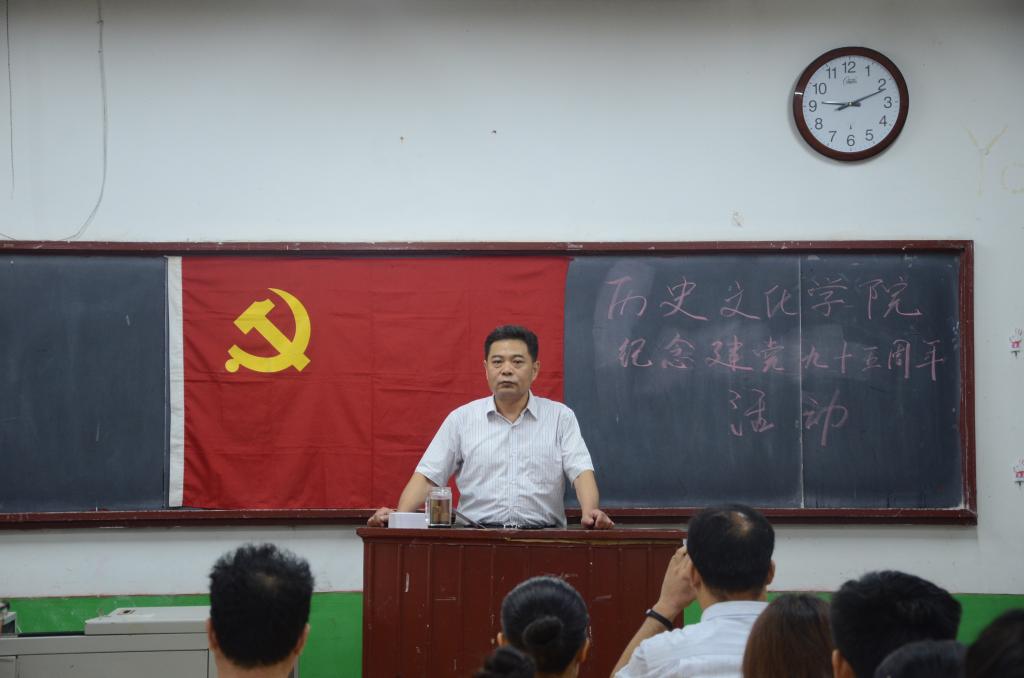 2016年7月1日上午九点,足球直播515官网 党委在文史楼102教室隆重举行庆祝建党九十五周年庆祝活动。党委书记尹明法、副书记王慕东,教工党支部、研究生党支部、学生党支部全体党员参加了此次活动。活动由学生党支部书记王建阳主持。