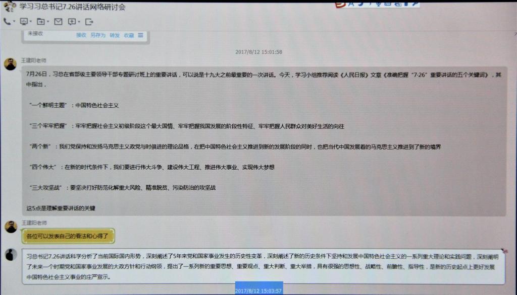 8月12日,足球直播515官网 本科党支部召开网络会议集体学习7月26日习近平总书记在省部级主要领导干部专题研讨班上的重要讲话,会议由本科生党支部书记王建阳主持。