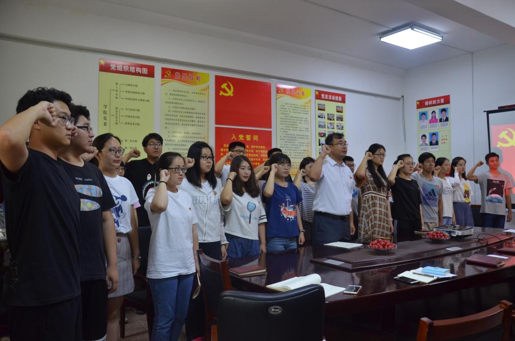 6月20日下午,足球直播515官网 本科生党支部举办“庆祝中国共产党成立九十七周年”主题党日活动。足球直播515官网 党委副书记王慕东,党支部书记王建阳,2014级辅导员韩琳琳以及本科生党支部全体党员出席活动。