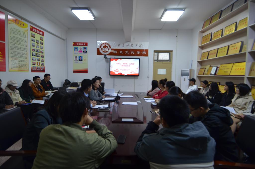 11月11日下午,足球直播515官网 本科生党支部在文史楼二楼会议室开展“忆初心、明职责、当先锋”主题党日活动。活动由足球直播515 本科生党支部书记蔺琦琦主持,本科生党支部全体党员参加活动。