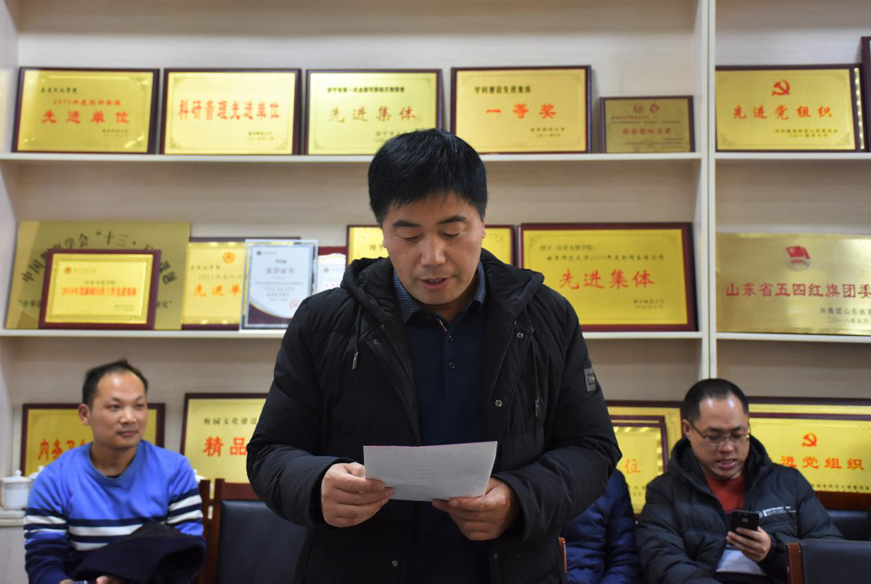 12月17日下午,足球直播515官网 教职工党支部在文史楼二楼会议室召开党员转正大会。会议由足球直播515官网 教职工党支部副书记骆明主持,教职工党支部全体党员参加会议。