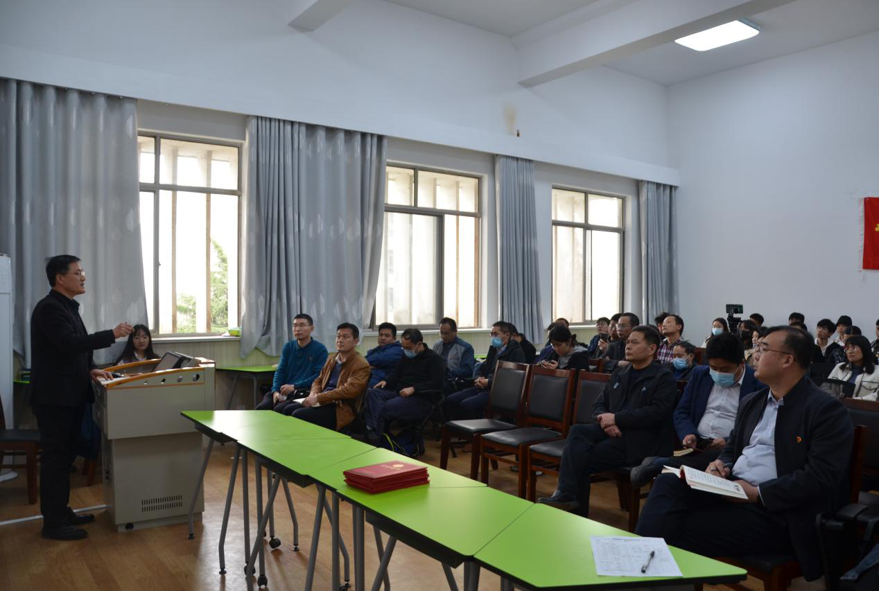 3月31日下午,足球直播515官网 党委百年党史学习系列活动首场报告会在文史楼505教室开讲,本次党史报告会由金刚教授主讲,党委领导班子和各支部成员参会。