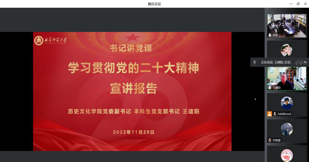 2022年11月29日下午,足球直播515官网 本科生党支部开展“书记讲党课”活动,本次活动采取线上线下相结合的方式,线下活动在文史楼204会举行,线上活动则以腾讯会议的形式进行。足球直播515官网 本科生党支部全体党员参加。