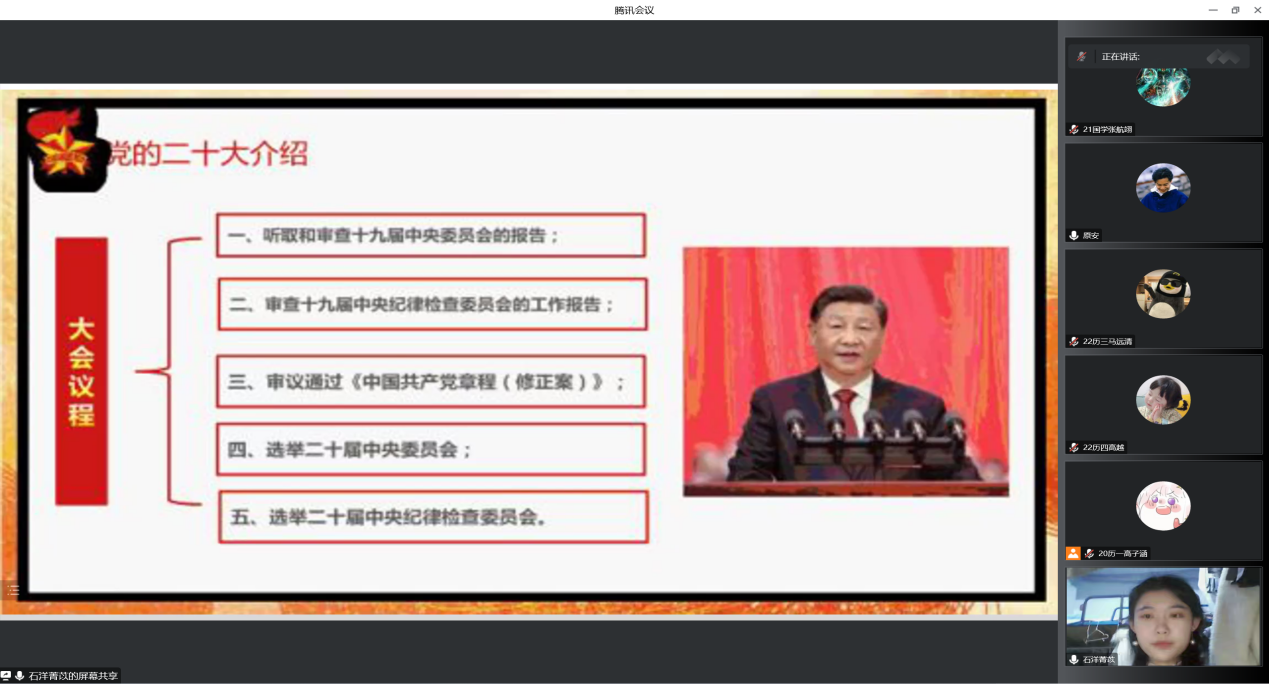 2022年12月4日晚,足球直播515官网 本科生党支部开展“师哥师姐讲党课”活动,本次活动以腾讯会议的形式进行。足球直播515官网 本科生党支部全体党员参加。
