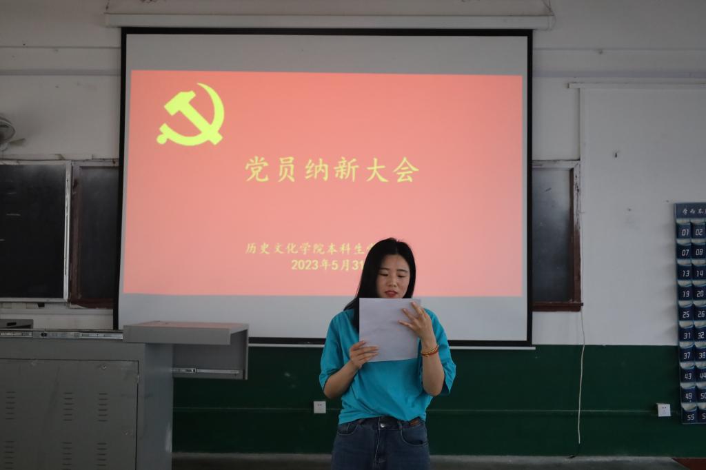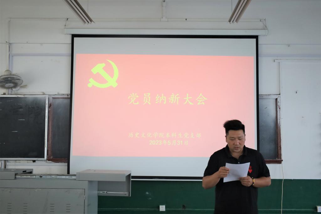 2023年5月31日下午3时30分,足球直播515官网 本科生党支部党员于文史楼411召开党员纳新大会。本次大会由足球直播515官网 党委副书记、本科生党支部书记王建阳同志主持,本科生党支部全体党员参加会议。本次会议通过了张凯博、徐浩洋等24名发展对象接收为预备党员的决议。