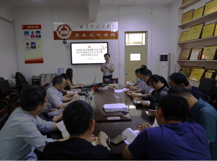 5月31日,足球直播515官网 中国史教师党支部于文史楼二楼会议室开展支部书记讲主题教育专题党课。支部书记姜修宪讲了题为《深刻认识全面理解习近平新时代中国特色社会主义思想的世界观和方法论》的专题党课。中国史党支部全体成员参加会议。