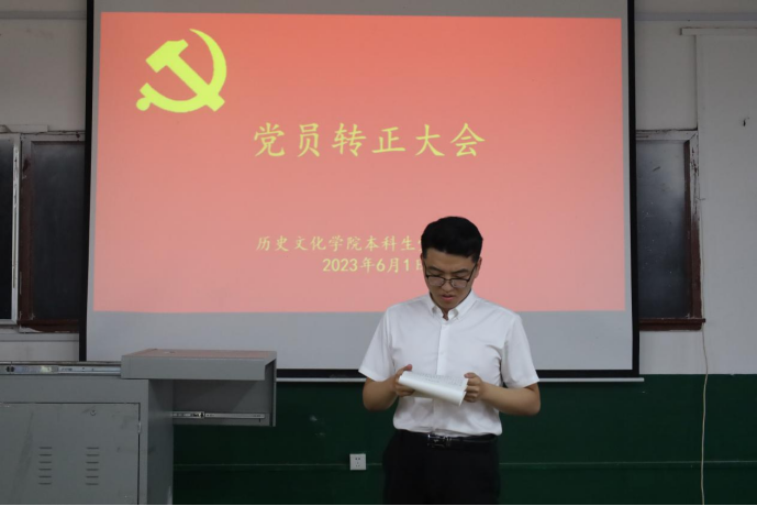 2023年6月1日下午5时30分,足球直播515官网 本科生党支部于文史楼411召开党员转正大会。本次大会由足球直播515官网 党委副书记、本科生党支部书记王建阳同志主持,本科生党支部全体党员参加。