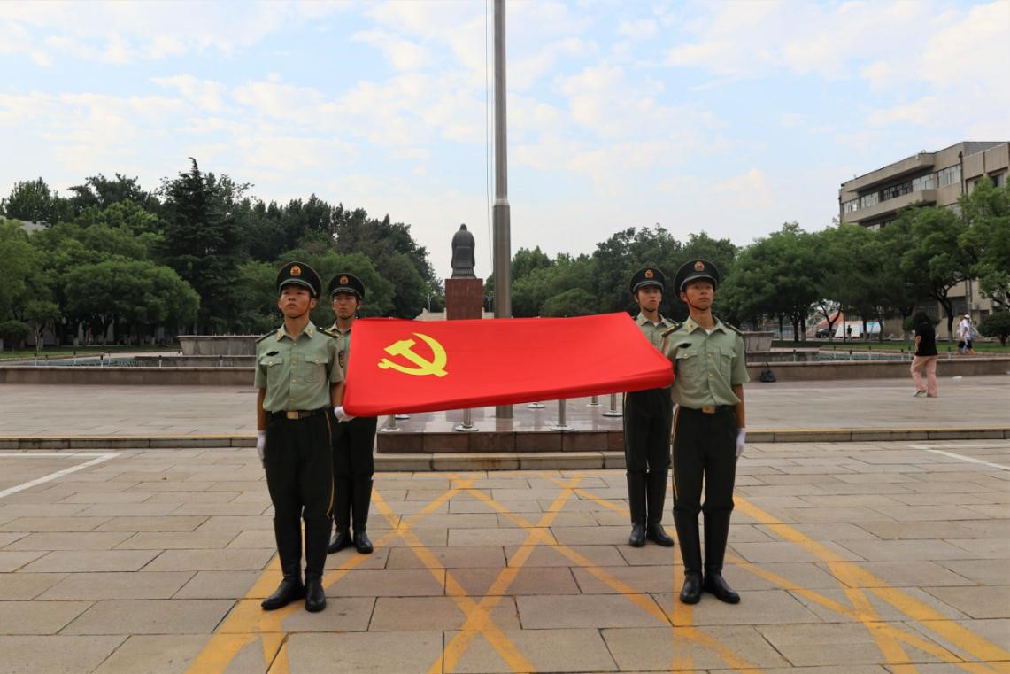 随后在升旗仪式中,目睹着五星红旗冉冉升起,党员们在孔子文化广场面对国旗行注目礼并合唱国歌,深怀着对祖国无限的热爱和崇高的敬意。