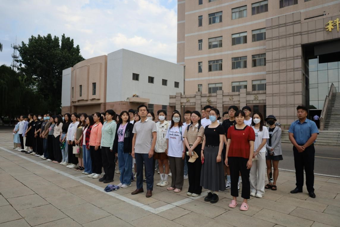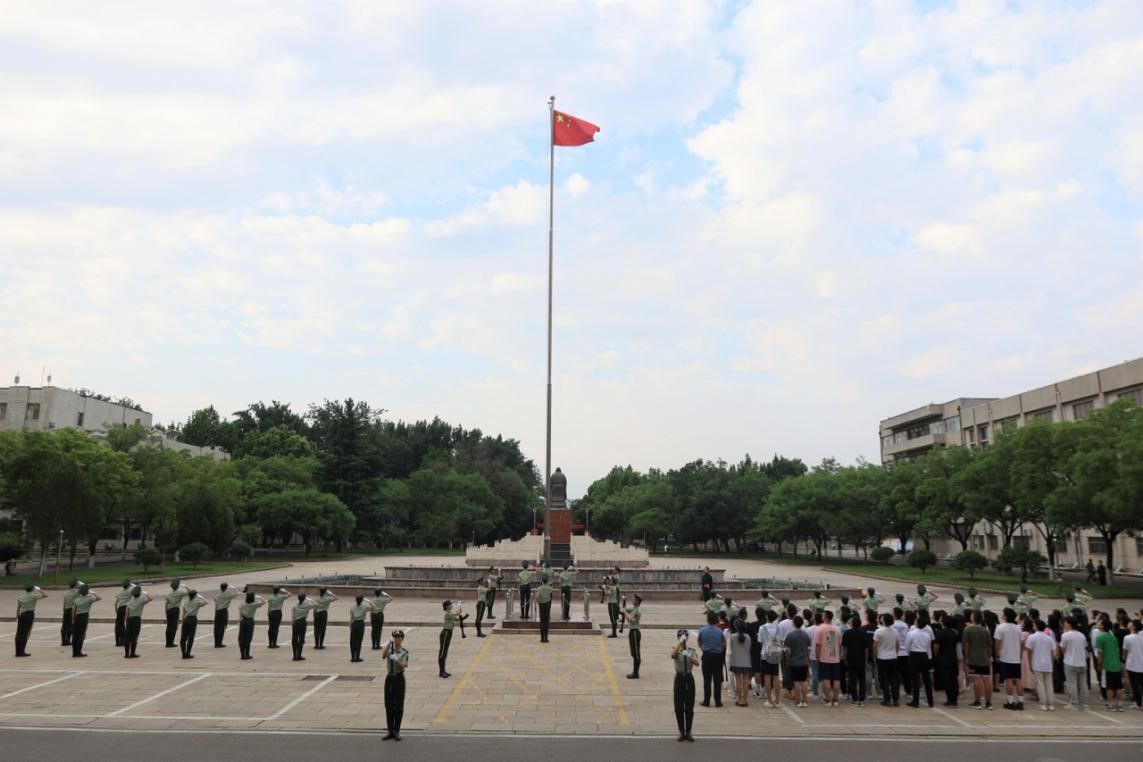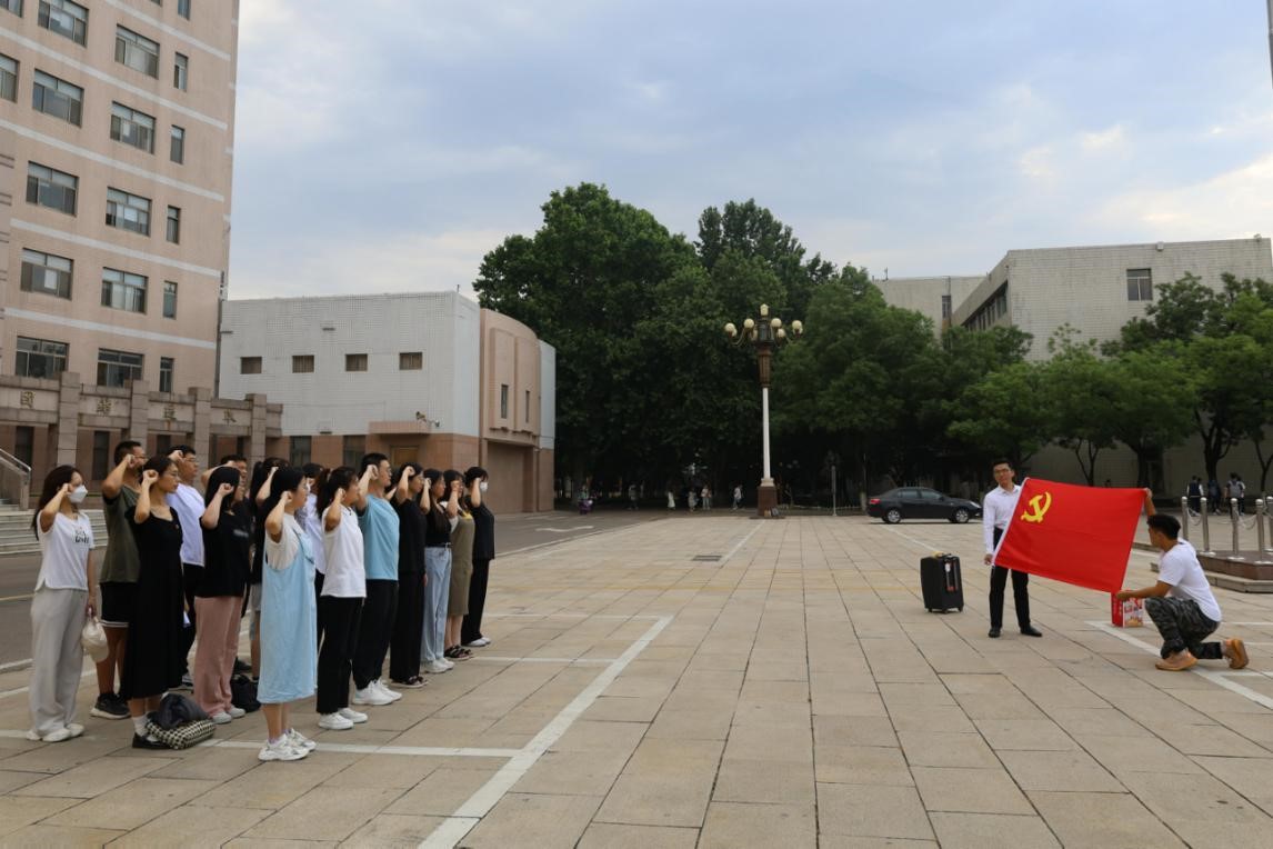 2023年6月12日上午,足球直播515官网 本科生党支部和研究生党支部于学校科技楼前开展重温入党誓词活动暨毕业生党员“七个一”系列活动——观看升旗仪式。本科生党支部和研究生党支部全体毕业生党员参加此次活动。
