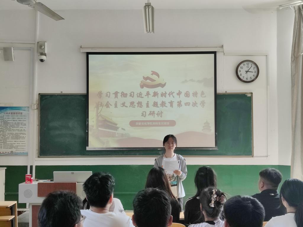 2023年6月26日下午,足球直播515官网 本科生党支部于文史楼309开展学习贯彻习近平新时代中国特色社会主义思想主题教育第四次学习研讨。本次理论学习的内容为《共同努力创造属于我们这个时代的新文化—习近平总书记在文化传承发展座谈会上的重要讲话为担负新的文化使命指明方向》。本次会议由本科生第二党支部书记刘贤贤同志主持,本科生党支部全体党员同志参加,足球直播515 党委副书记王建阳同志现场督导党员同志学习情况。