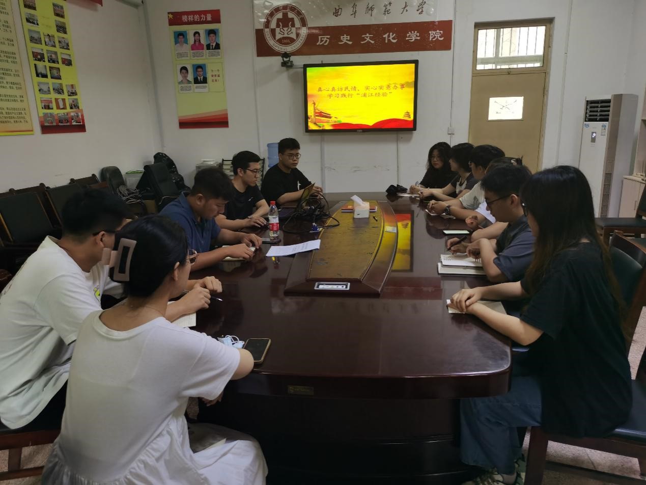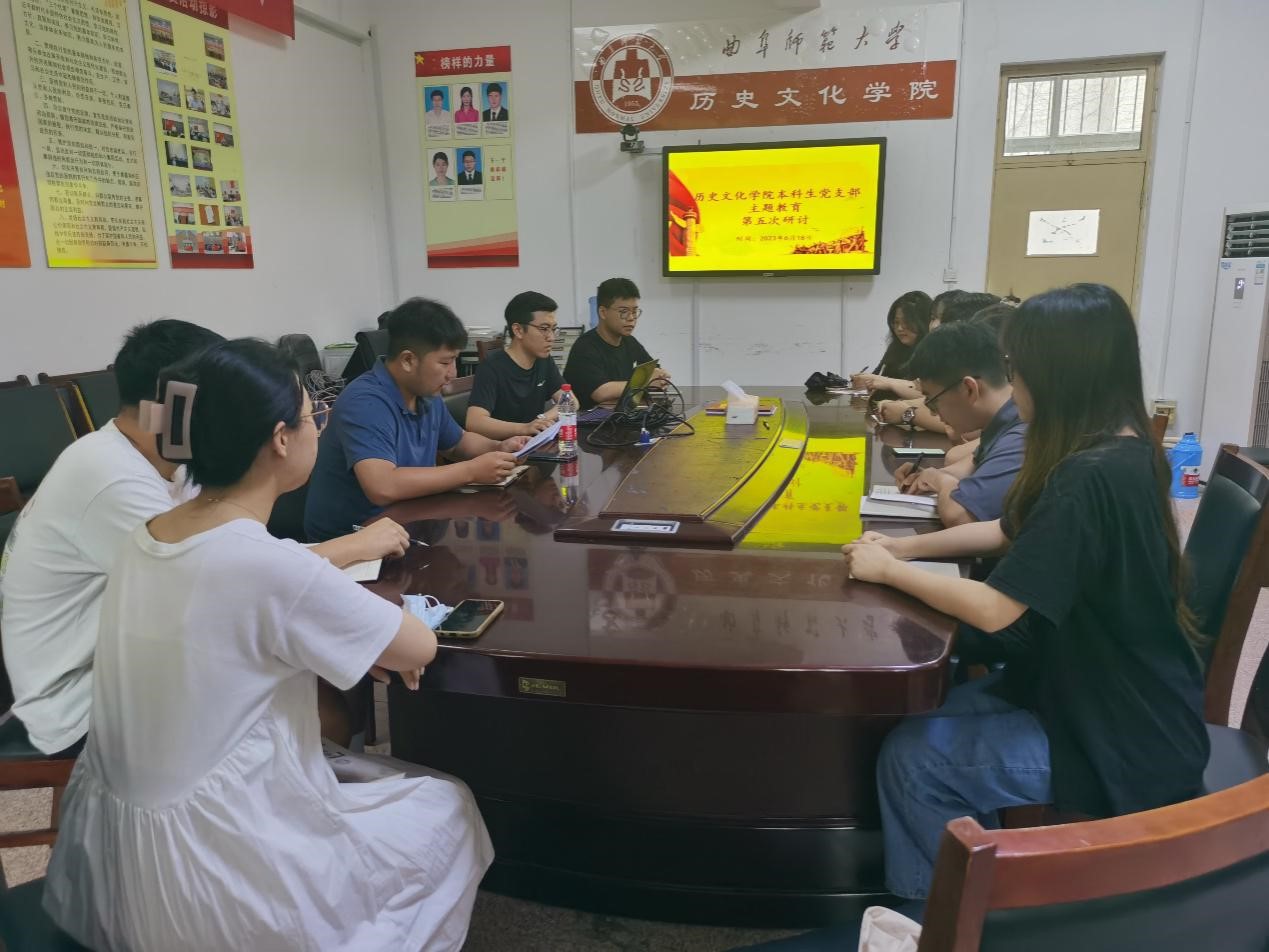 2023年7月4日上午,足球直播515官网 本科生党支部于文史楼204开展学习贯彻习近平新时代中国特色社会主义思想主题教育第五次学习研讨。本次理论学习的主要内容为学习“浦江经验”和“千万工程”。会议由本科生第三党支部书记董经同志主持,本科生党支部全体党员同志参加,足球直播515 党委副书记王建阳同志现场督导党员同志学习情况。
