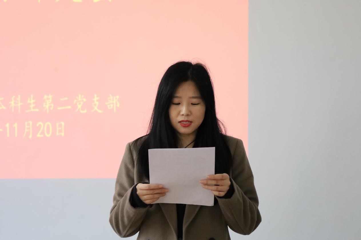 2023年11月20日上午10时30分,足球直播515官网 本科生第二党支部于孔子书院B106召开党员纳新大会。本次大会由足球直播515官网 本科生第二党支部书记刘贤贤同志主持,本科生第二党支部全体党员参加会议。本次会议通过了胡冯淼、李昊等5名发展对象接收为预备党员的决议。