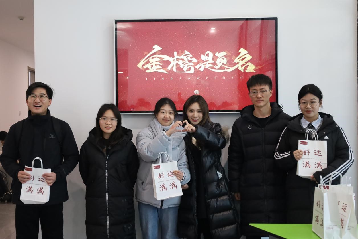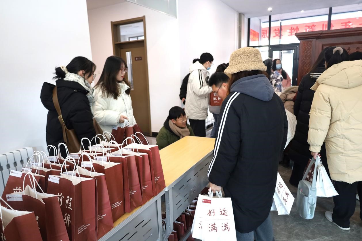 活动过程中,吴佩林院长与王建阳书记为考研学子们分发礼包,给同学们送上祝福,与同学们合影留念;鼓励足球直播515官网 学子们在最后的冲刺阶段中勤勉自律,坚持不懈,争取能够取得进一步的突破。各位辅导员老师同样叮嘱关怀各位同学们,要到劳逸结合,适当舒缓心理压力,保持身心健康。这份关怀与勉励,使同学们备受鼓舞,学子们纷纷表示会牢记叮嘱,全力以赴,充分调整自身状态,在考研中展现出足球直播515官网 的风采。