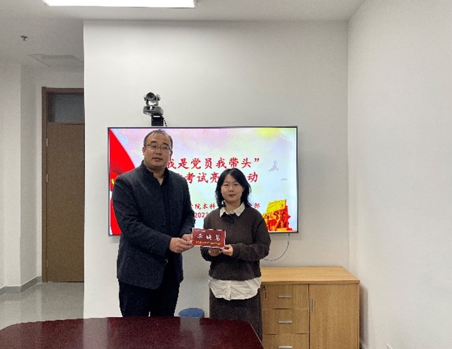 紧接着,由王建阳书记发表诚信考试讲话,倡导全体党员要在考试过程中以身作则,展现出崇高的先锋模范形象,切实恪守严格的考试纪律,维护良好的考风考纪。随后王建阳书记向在场党员们颁发了象征着诚信的考试姓名牌。大家纷纷表示要将道德原则和规范内化于心、外化于行,秉持真实务实的精神,始终坚守诚信的原则积极参与考试。