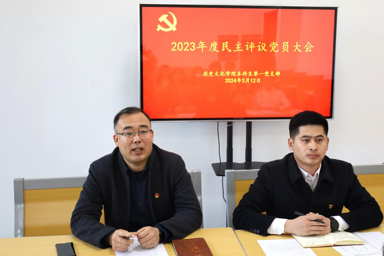 3月12日,足球直播515官网 本科生第一党支部于孔子书院B106教室召开2023年度民主评议党员大会,会议由支部书记王建阳主持,支部全体党员参加。