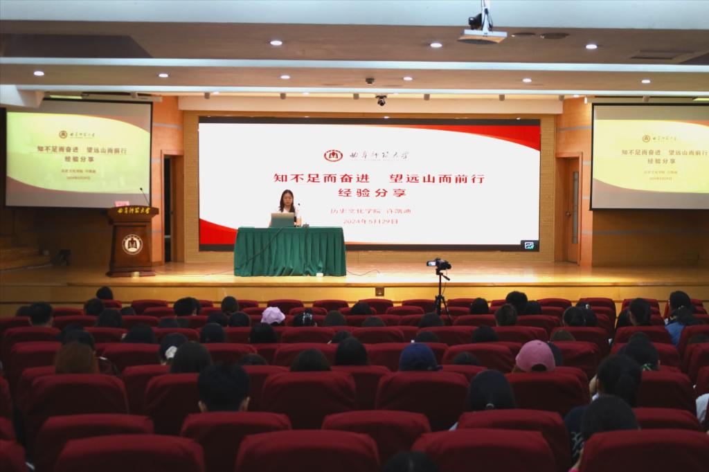 本次活动特邀请本科生第一党支部成员、2020级历史学(师范•国学)专业毕业生许凯迪同志向大家分享专业学习经验,助力考研征程。许凯迪同志从专业日常学习、科创项目竞赛、论文写作指导三大模块进行了详细的分享。对于学术竞赛,许凯迪同志带大家从项目前期准备、实地调研、口述访谈到最后的项目收尾进行了完整深入的了解。