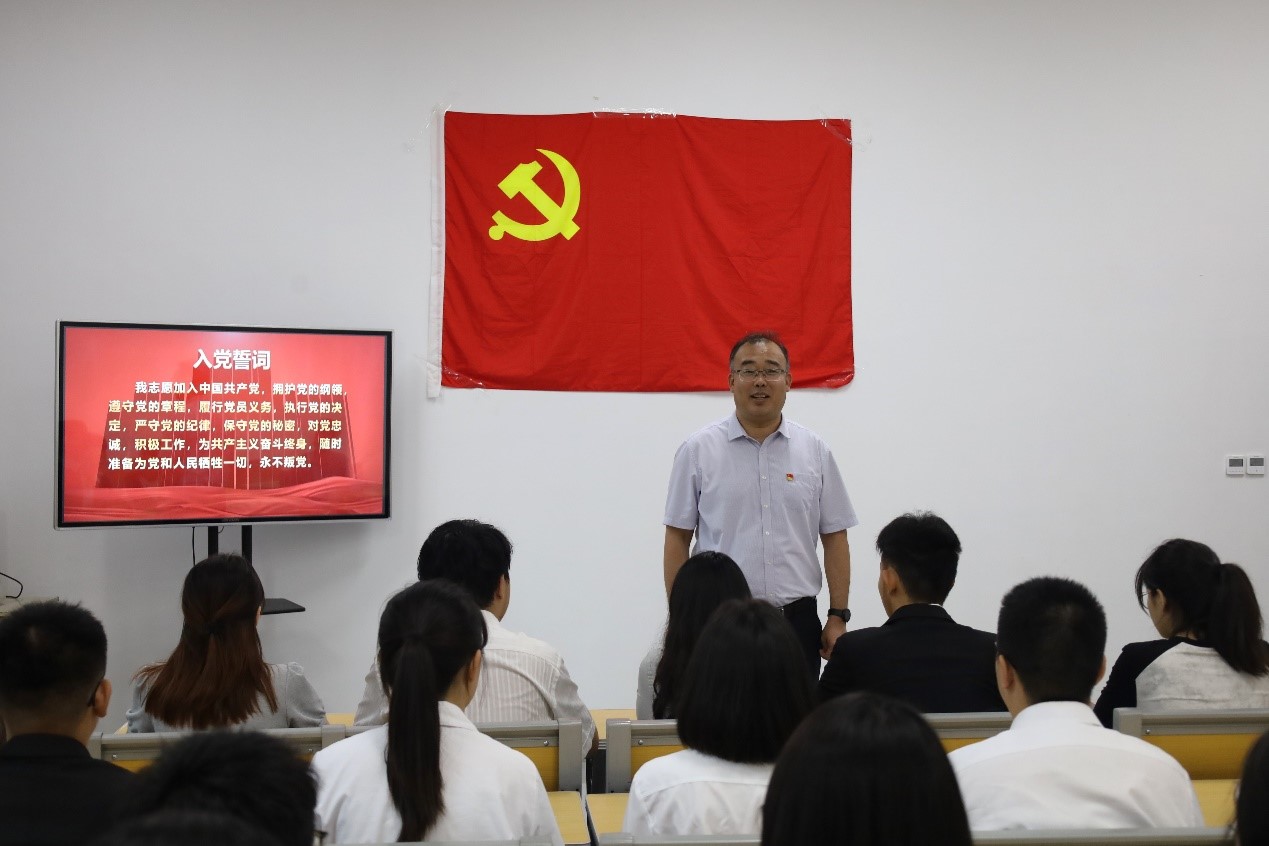 7月1日,正值中国共产党成立103周年,足球直播515官网 本科生党支部与研究生党支部于孔子书院B106会议室举行预备党员集体宣誓仪式。足球直播515官网 党委副书记王建阳同志、研究生第一党支部书记孙峰同志、本科生第二党支部书记刘贤贤同志、本科生第一党支部副书记闫浩同志、本科生第三党支部书记董经同志出席会议,足球直播515 2024年新发展党员参加本次宣誓仪式。