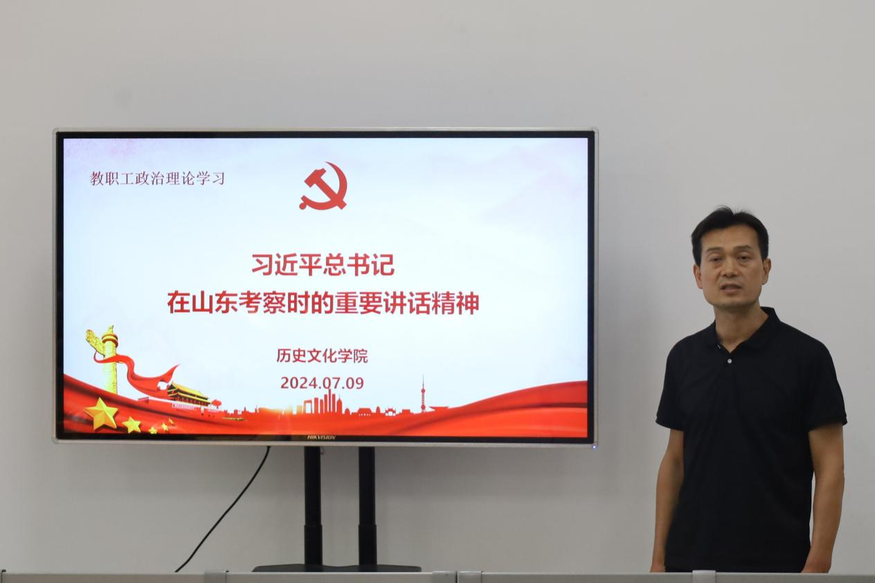 会议首先进行了政治理论学习,足球直播515 党委宣传委员孙锋同志领学了习近平总书记在山东考察时的重要讲话精神和习近平总书记在《求是》杂志2024年第10期发表的文章《全面深化改革开放,为中国式现代化持续注入强劲动力》。