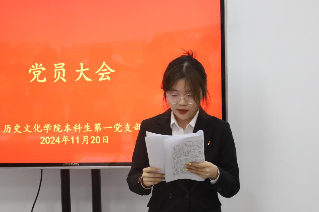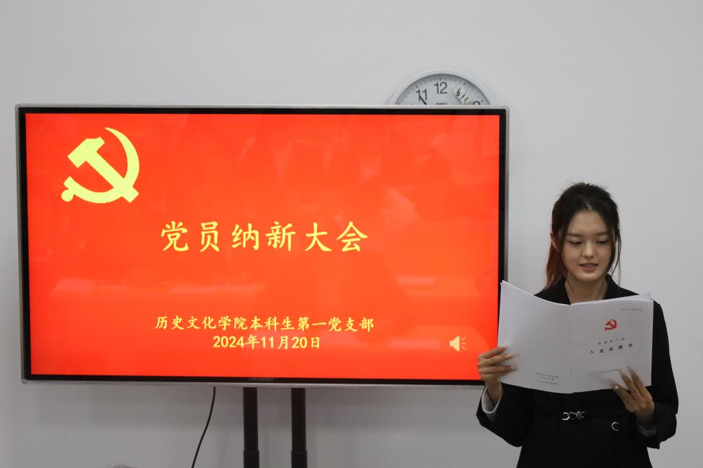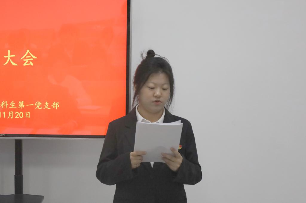 11月20日下午,足球直播515官网 本科生第一党支部于孔子书院B104教室召开党员纳新大会。大会由支部书记王建阳主持。