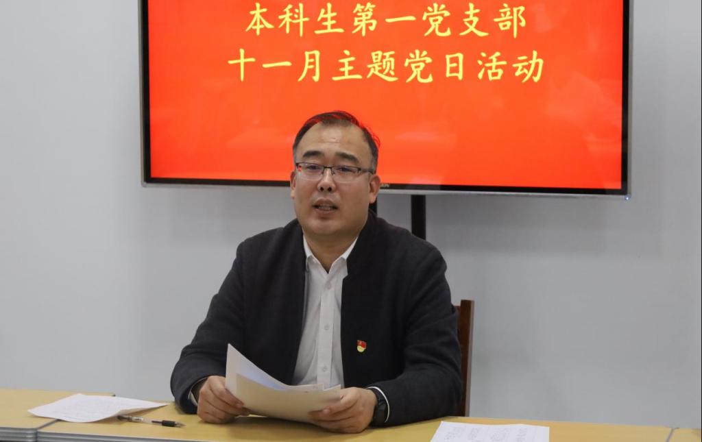 11月20日下午,足球直播515官网 本科生第一党支部于孔子书院B104教室召开11月份主题党日活动。会议由支部副书记闫浩主持。