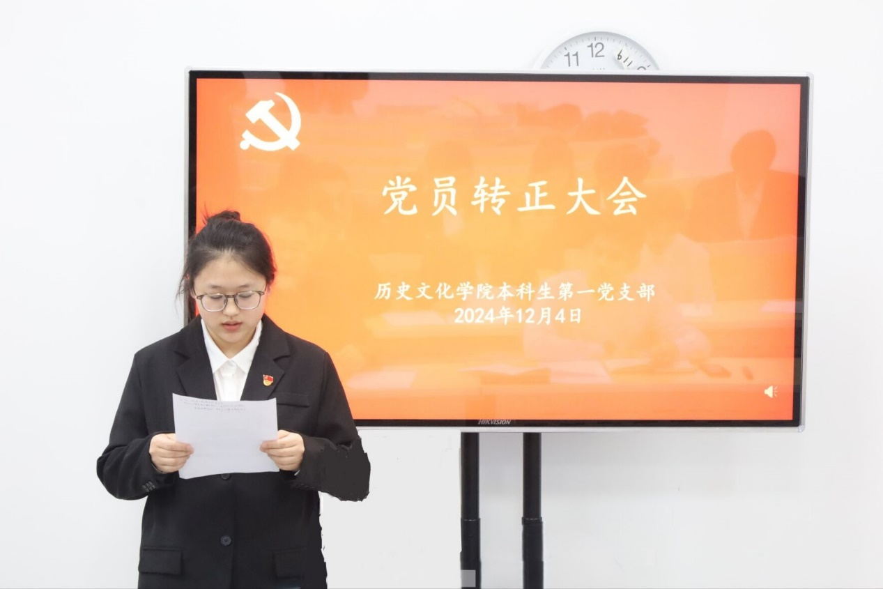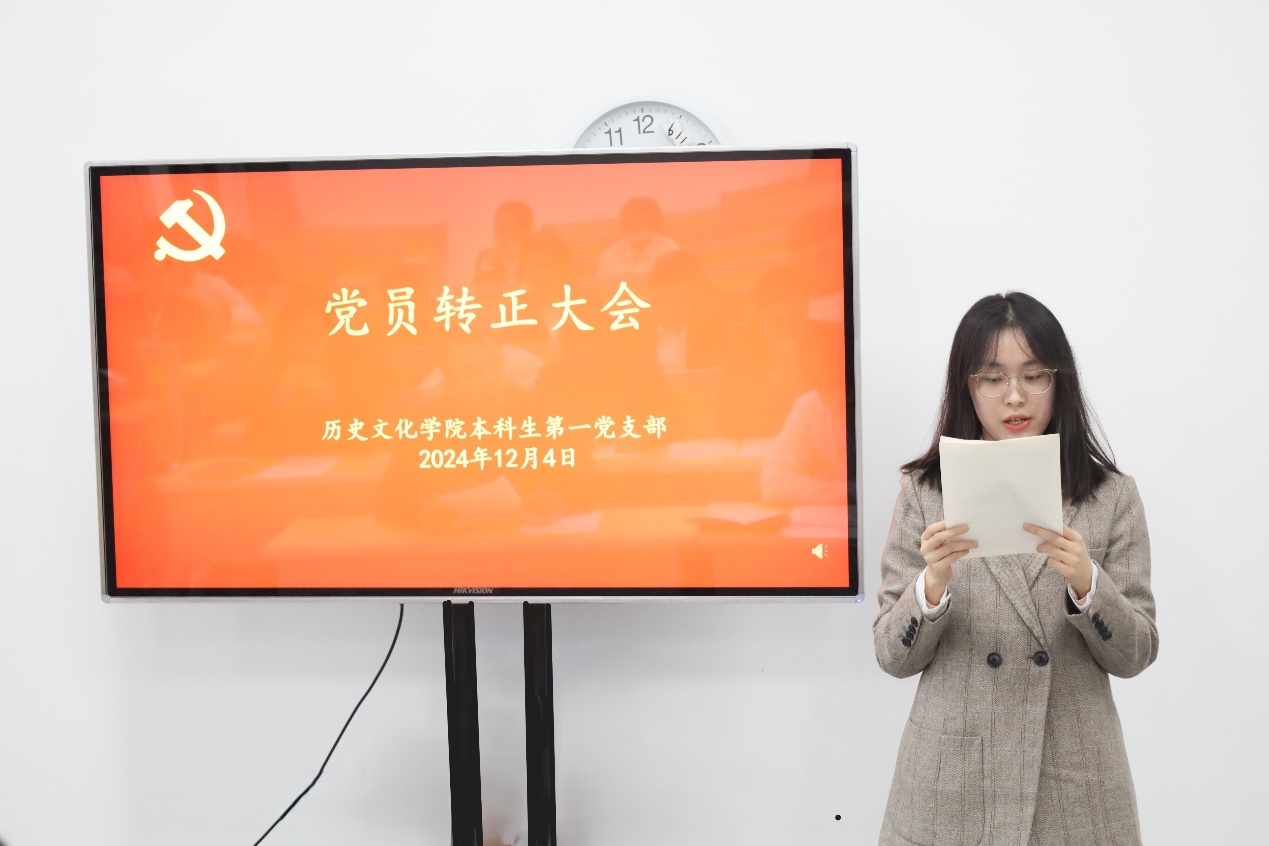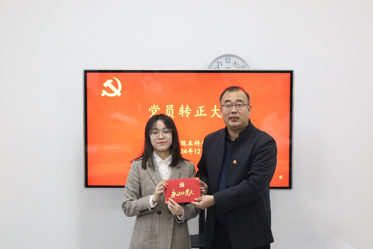 2024年12月4日,足球直播515官网 本科生第一党支部于孔子书院B104教室召开党员转正大会,讨论李映慧等5名同志转为正式党员的事宜。大会由支部书记王建阳主持,支部全体党员参加。