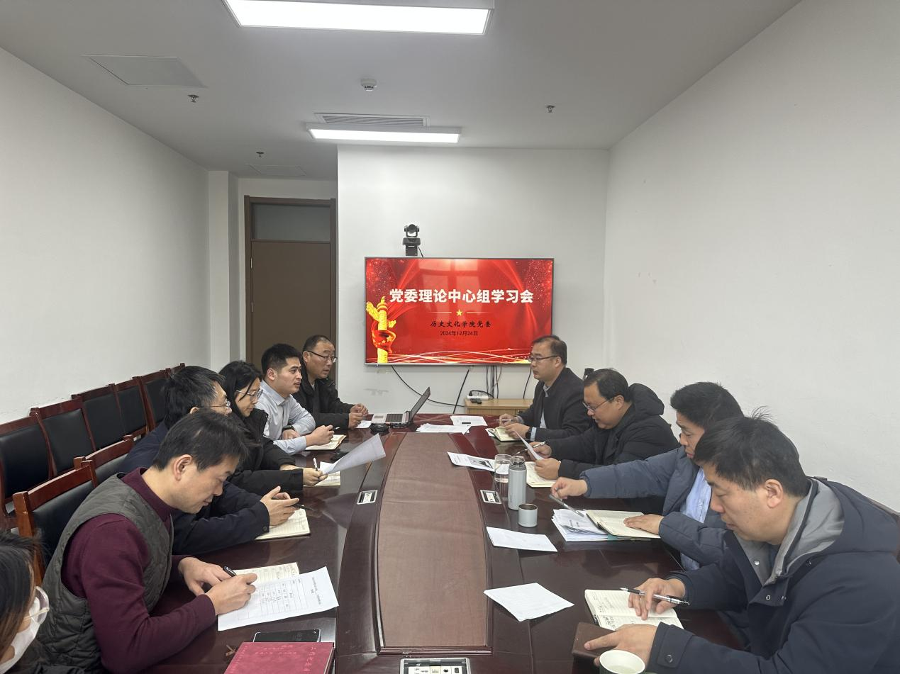 12月24日,足球直播515官网 党委理论中心组于孔子书院B230会议室组织2024年第12次专题学习会议。会议传达学习了习近平对新时代马克思主义理论研究和建设工程作出重要指示、《山东省安全生产条例》、习近平在《在文化传承发展座谈会上的讲话》和《党委(党组)落实全面从严治党主体责任规定》。会议由党委书记姜开勇同志主持,党委理论中心组全体成员参加会议。