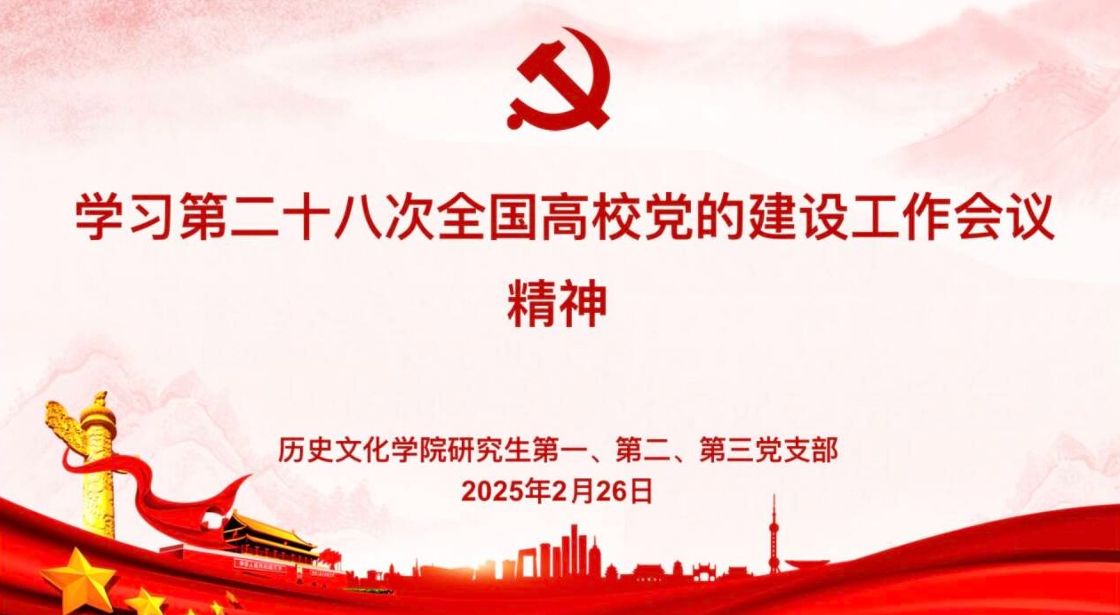 2025年2月26日下午,足球直播515官网 研究生第一、二、三党支部在孔子书院B106教室联合开展了2月份主题党日活动。本次主题党日活动的内容是学习“习近平文化思想”和“全国第二十八次高校党的建设工作会议精神”。活动由研究生第一党支部书记孙锋主持,研究生第二党支部纪检委员杨紫依领学。全体党员六十余人通过线上线下相结合的方式参与了本次活动。