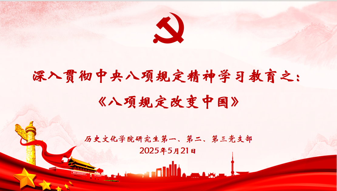 2025年5月21日下午,足球直播515官网 研究生第一、二、三党支部在孔子书院B120教室联合开展了5月份主题党日活动。本次主题党日活动的主题是集体观看学习深入贯彻中央八项规定精神学习教育专题片《八项规定改变中国》。活动由研究生第一党支部书记孙锋主持,研究生第二党支部纪律委员杨紫依领学,全体在校研究生党员参加了本次活动。