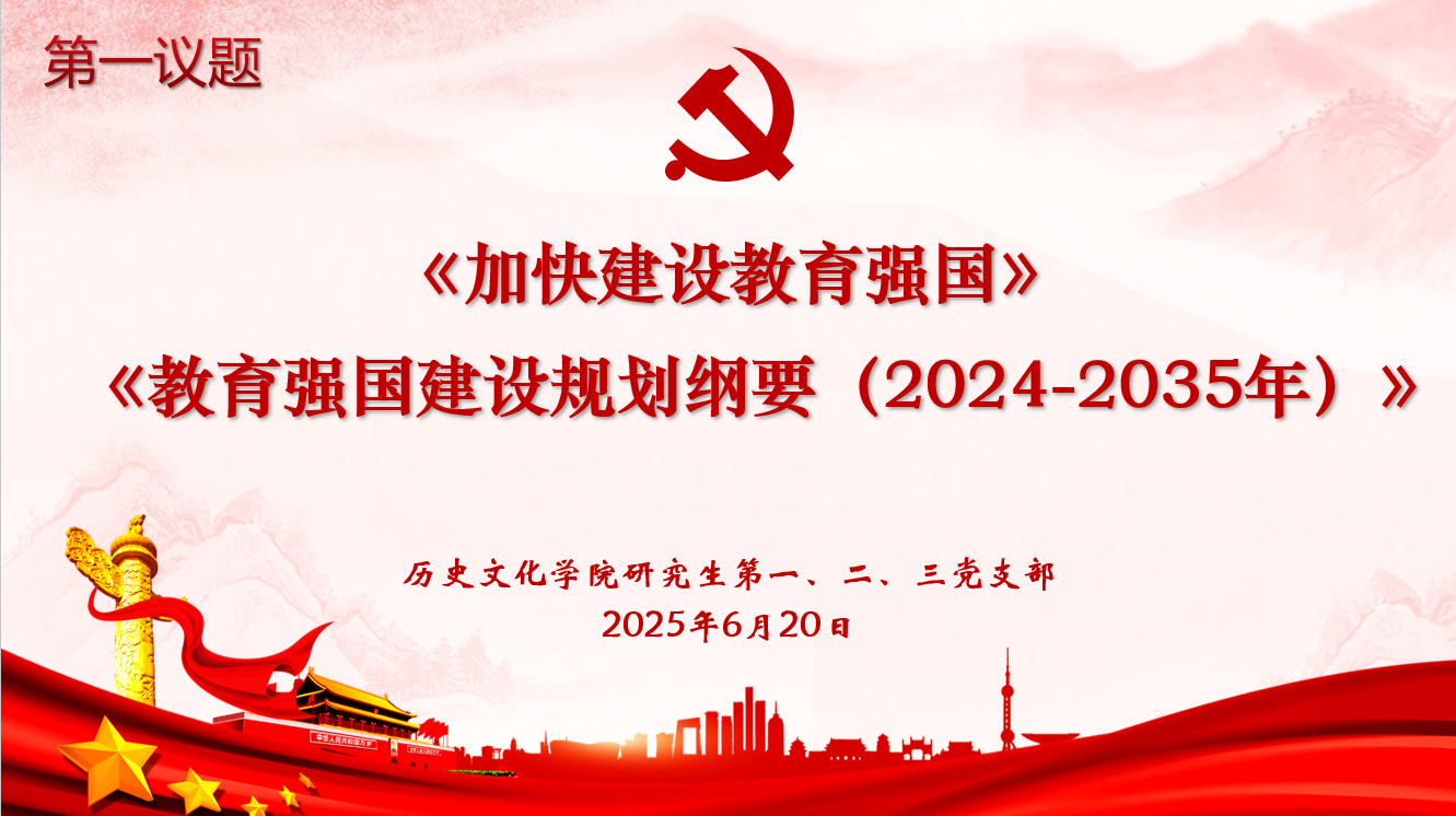 主题党日活动前,全体与会同志首先第一议题学习传达了习近平总书记在6月1日出版的第11期《求是》杂志发表的重要文章《加快建设教育强国》以及2025年1月中共中央、国务院印发的《教育强国建设规划纲要(2024-2035年)》。文章强调,建成教育强国是近代以来中华民族梦寐以求的美好愿望,是实现以中国式现代化全面推进强国建设、民族复兴伟业的先导任务、坚实基础、战略支撑,必须朝着既定目标扎实迈进。《纲要》则以习近平新时代中国特色社会主义思想为指导,紧扣党的二十大战略部署,为教育强国建设绘就了时间表与路线图。