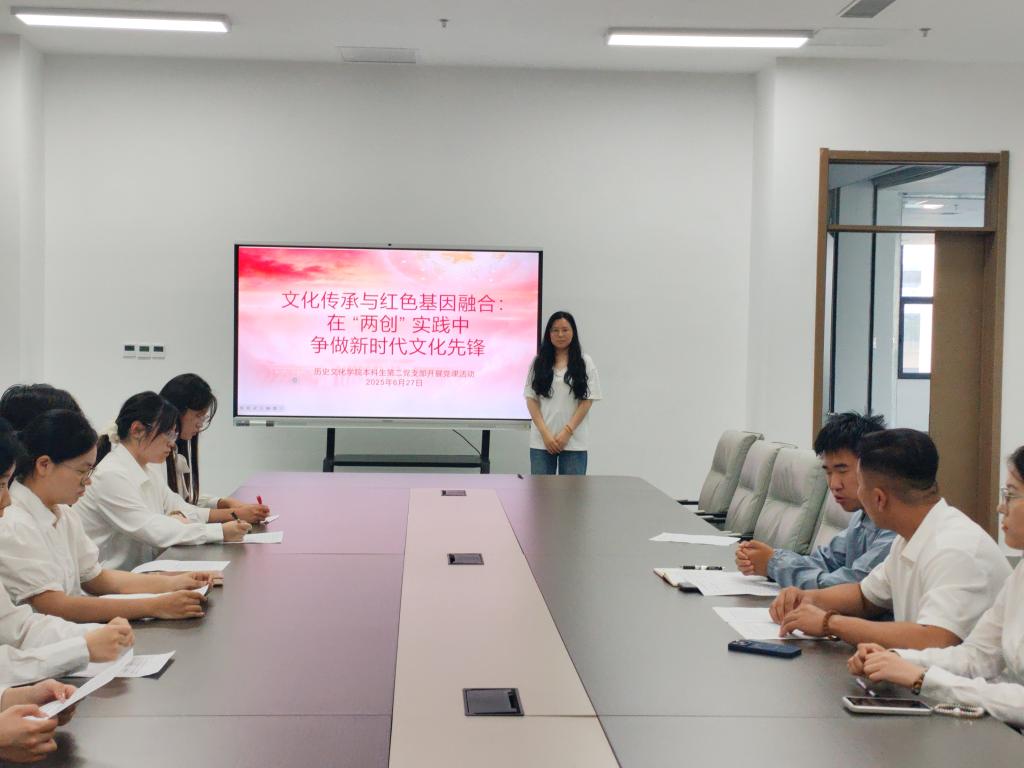 6月27日下午,足球直播515官网 本科生第二党支部开展支部书记讲党课活动,本科生第二党支部书记刘贤贤以《文化传承与红色基因融合:在 “两创” 实践中争做新时代文化先锋》为题,为学生党员带来了一场深刻而生动的党课。