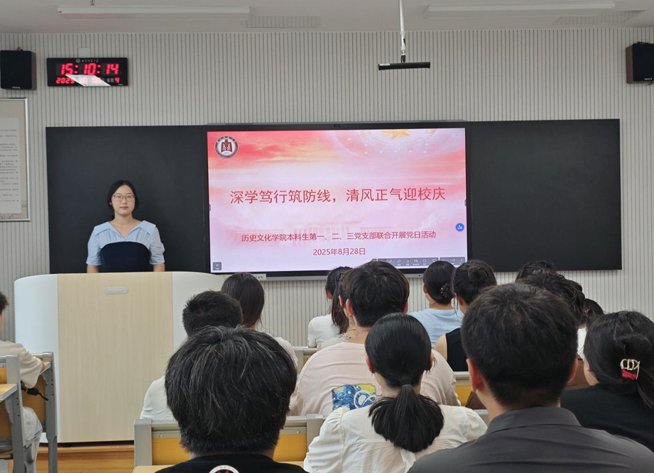 2025年8月28日,足球直播515官网 本科生第一、二、三党支部于致知楼B303联合开展“深学笃行筑防线,清风正气迎校庆”主题党日活动。活动由董经同志主持,足球直播515官网 本科生第一、二、三党支部全体党员参与。