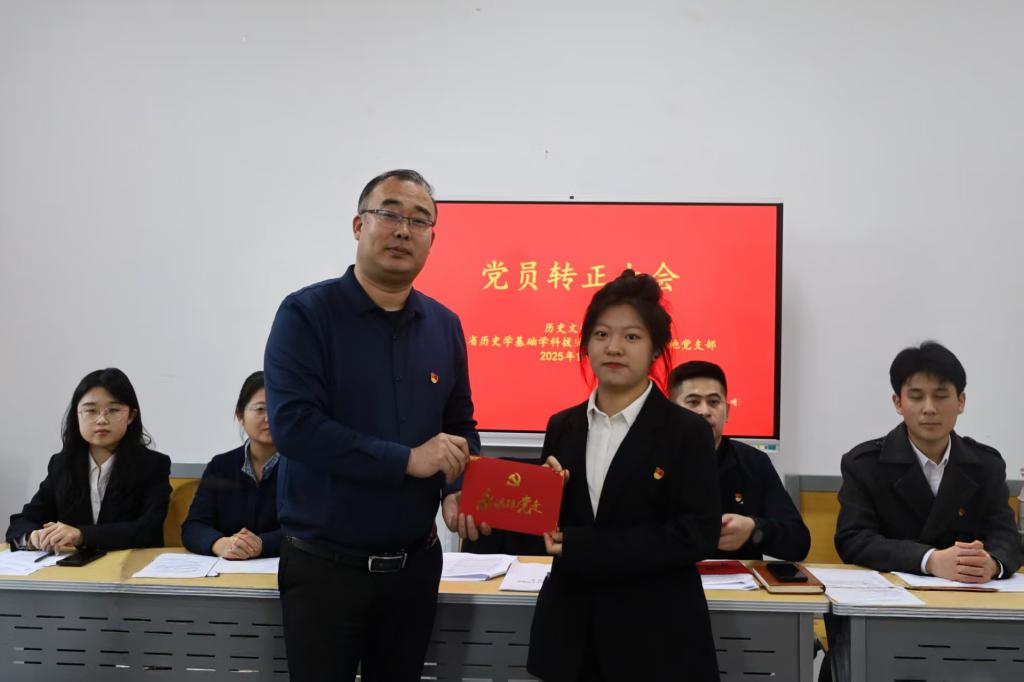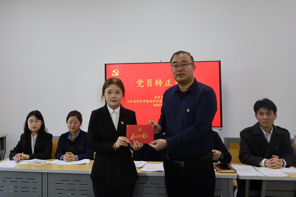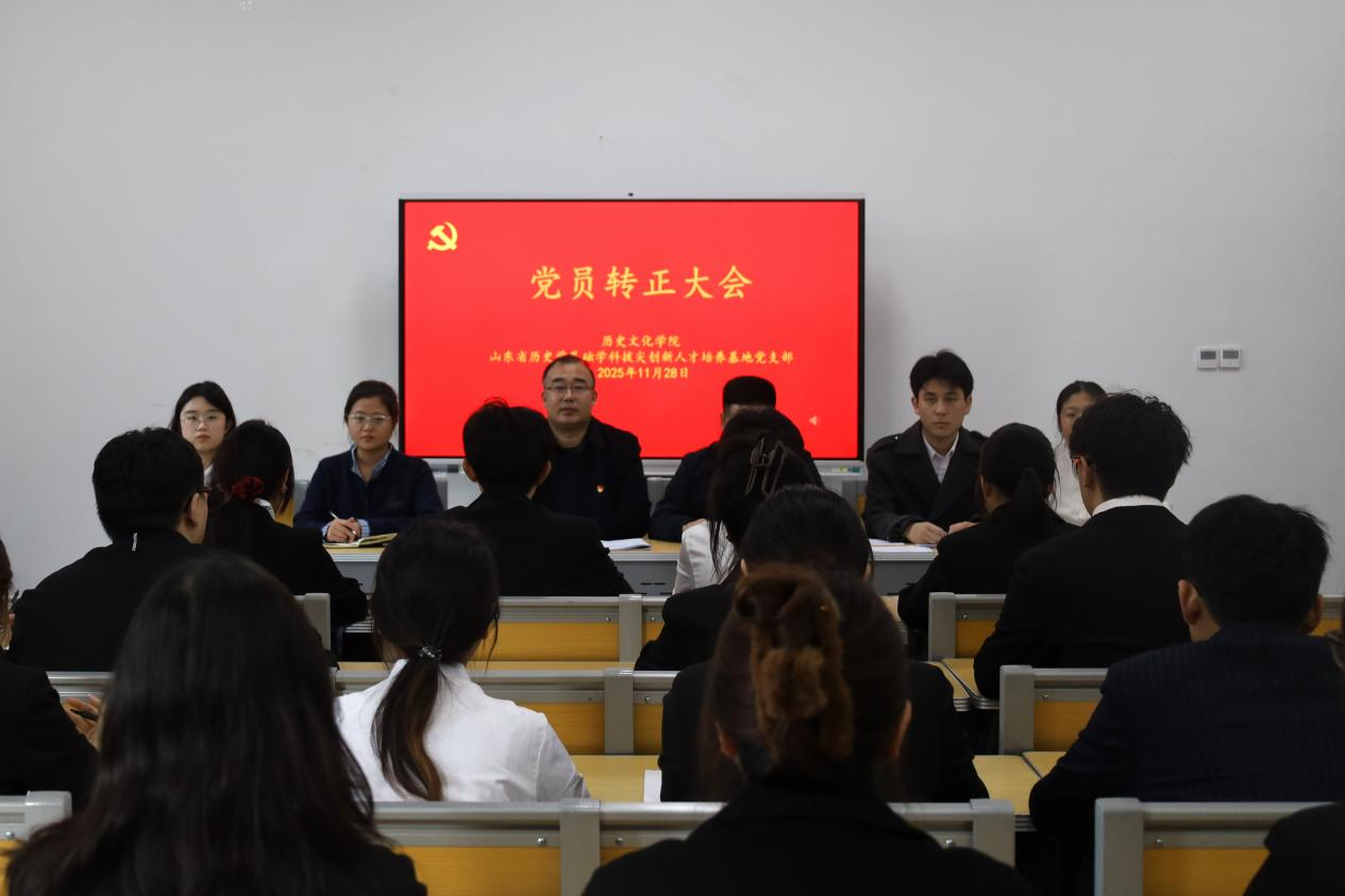 11月28日下午,足球直播515官网 山东省历史学基础学科拔尖创新人才培养基地党支部于孔子书院B106室召开转正大会,大会由党支部书记王建阳主持。