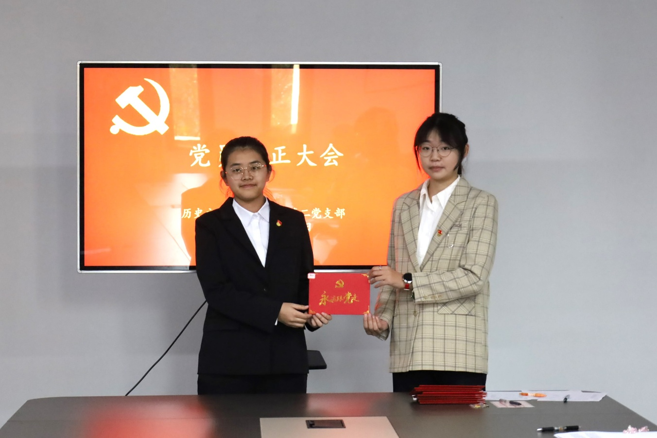 参加本次转正大会的预备党员为窦衍洁、盛渝淇、任鸿飞、范仕轩、马嘉凝、杜林欐6位同志,参加本次党员纳新大会的同志为高孝闻、张梦想、葛子惠、姚丹旸、郭颖、马奕安6位同志。会议严格按照学校预备党员转正流程和预备党员接收流程进行,顺利通过了窦衍洁等6名同志按期转为中共正式党员和接收高孝闻等6名同志为中共预备党员的各项议程。