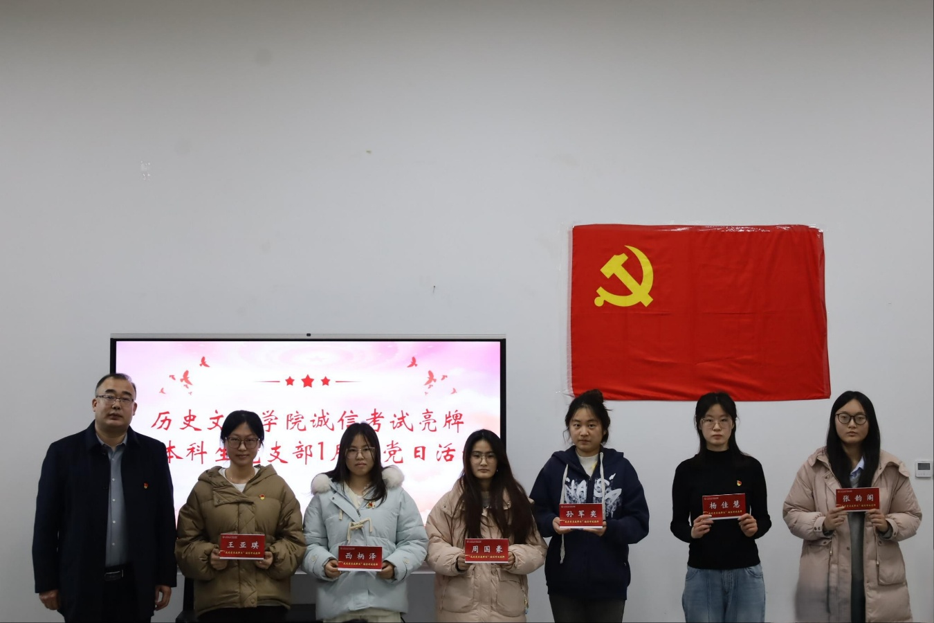 2026年1月2日,足球直播515官网 本科生党支部于孔子书院B106开展“我是党员我带头”诚信考试亮牌活动暨一月份主题党日活动,此次活动由第三党支部书记董经同志主持,足球直播515 党委副书记王建阳同志、本科生第二党支部书记刘贤贤同志、2025级辅导员韩瑞娟同志列席,2023级全体党员同志参与。