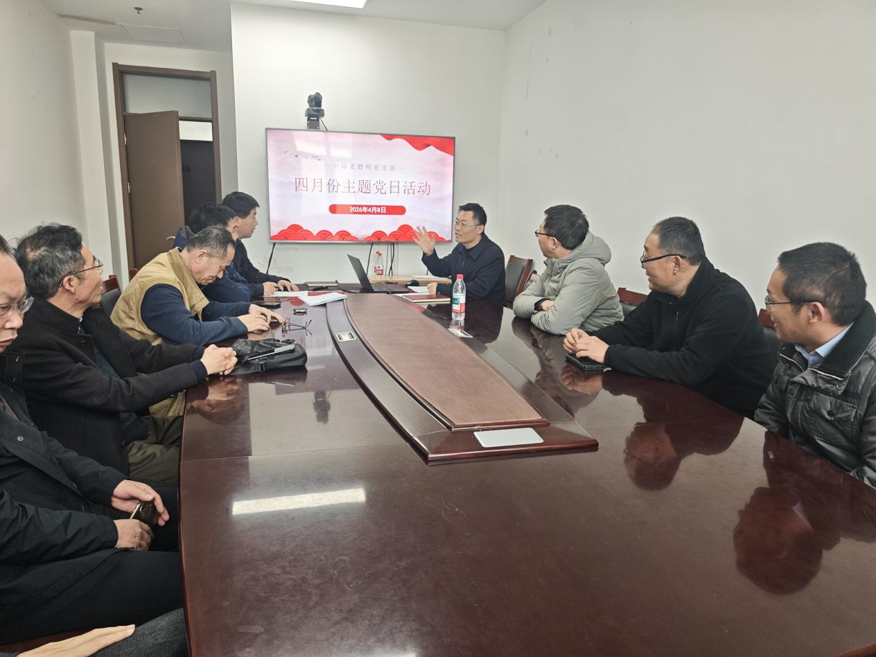 2026年4月8日,足球直播515官网 中国史教师党支部于孔子书院B230会议室开展四月份主题党日活动。会议由党支部书记姜修宪同志主持,中国史教师党支部全体党员参加会议。