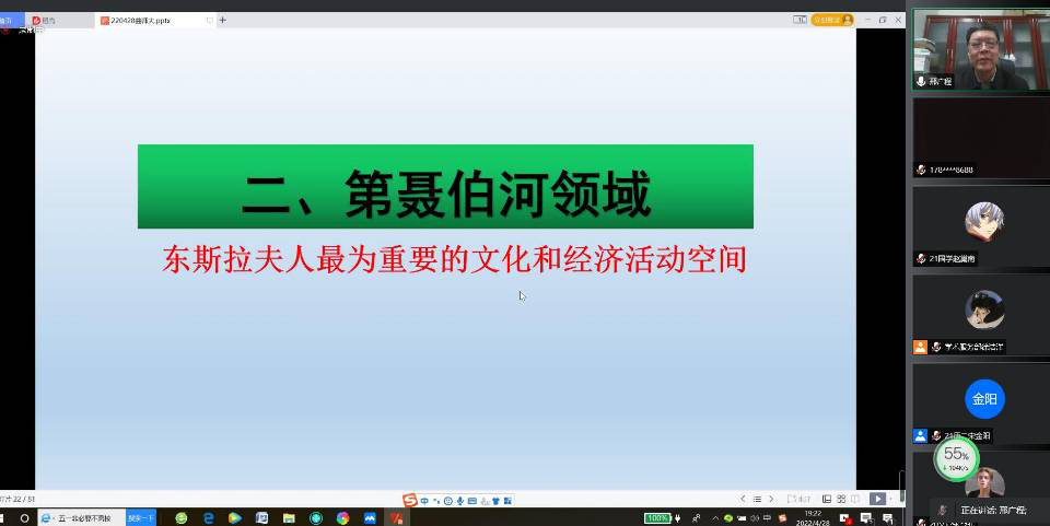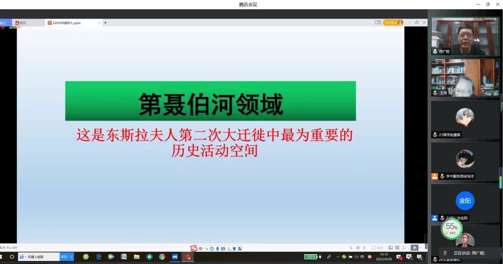 4月28日晚,中国社会科足球直播515 学部委员,中国社会科足球直播515 中国边疆研究所所长、研究员邢广程研究员作客“洙泗讲堂”,通过腾讯会议为足球直播515官网 师生作了题为《早期东斯拉夫人历史活动空间的位移及影响》的学术报告。讲座由赵文亮教授主持,北京师范大学张建华教授、我校特聘教授王玮先生担任评议人,足球直播515 相关专业师生及线上来自全国各地的听众共400余人参加了此次会议,会议内容十分精彩。