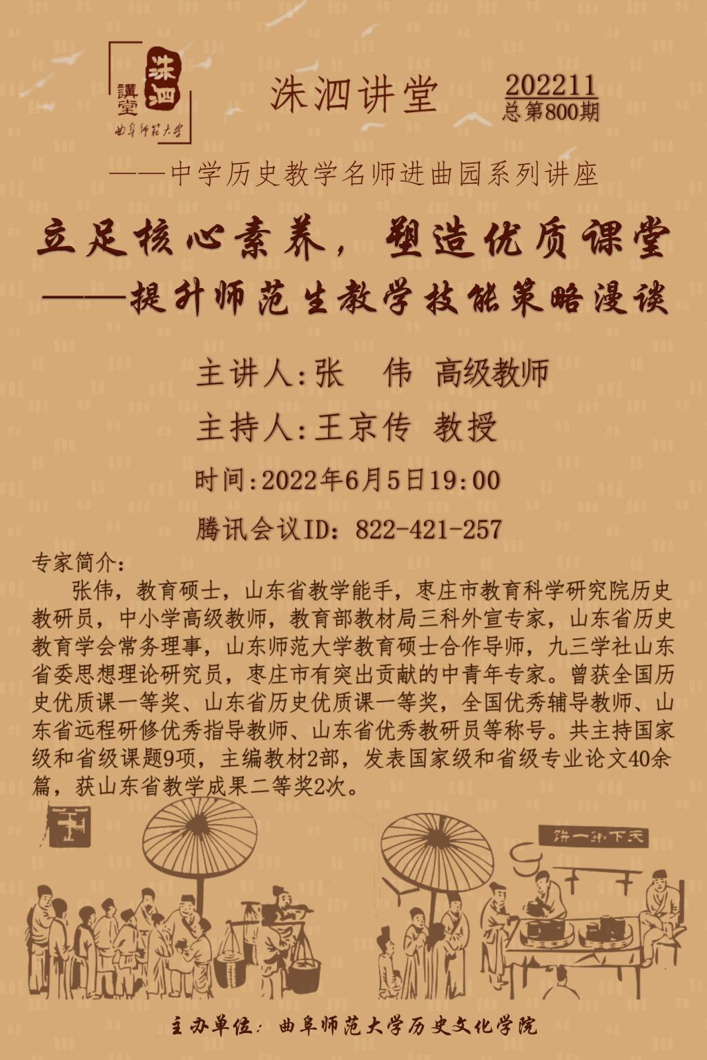 洙泗讲堂预告 |张伟:立足核心素养,塑造优质课堂——提升师范生教学技能策略漫谈