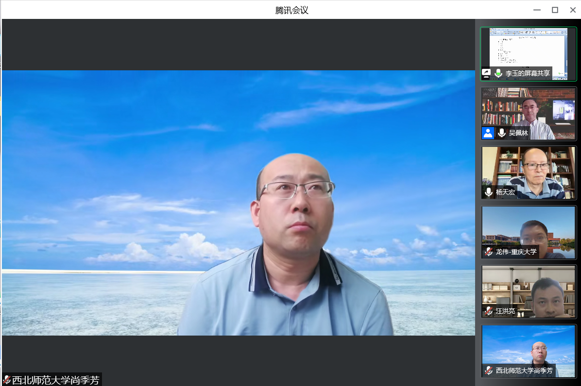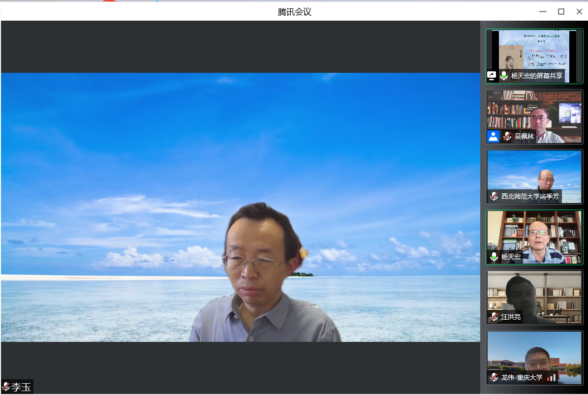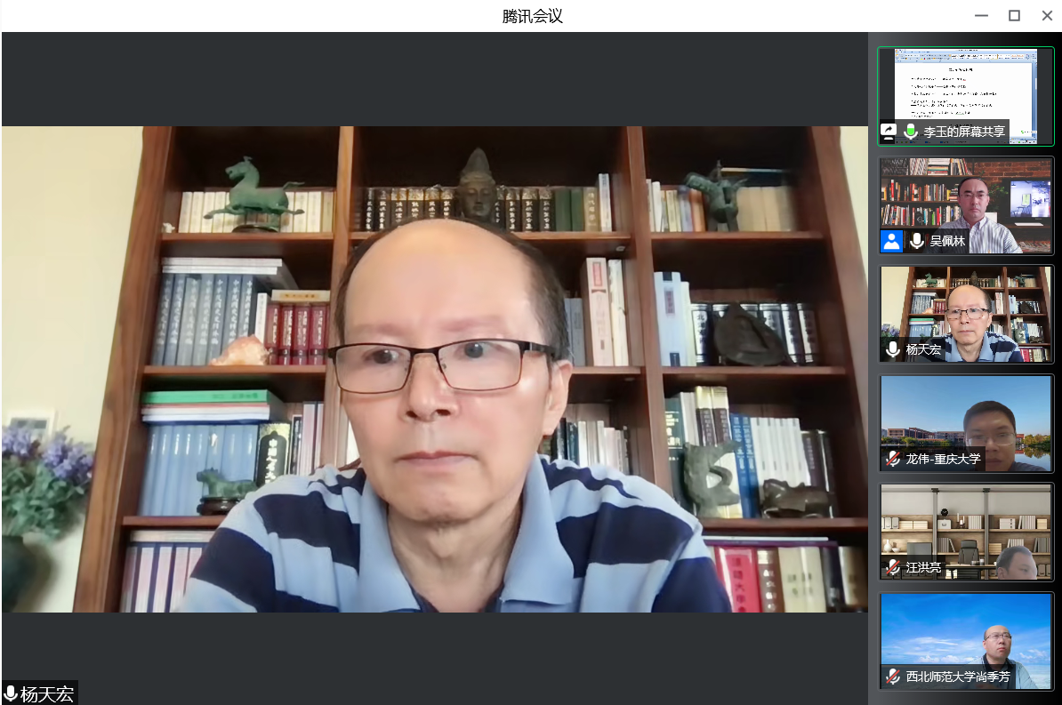 讲座最后,李玉、汪洪亮、龙伟、尚季芳、刘贤五位与谈人分享了自己对读书方法的认识。在提问互动环节中,杨教授就“如何有效率地掌握史学的资料以及书籍中的大概内容,以便于在研究问题和写论文的时候可以运用”“史学的书评机制的建议”等问题一一解答。最后,吴佩林院长再次对杨天宏教授的精彩讲座和五位评议人的分享表示感谢,并要求足球直播515 学生利用暑假至少精读一本专著或一种史料。各位老师同学也在腾讯会议中进行了合影留念。本次讲座在足球直播515官网 师生之间反响热烈,同时也得到了校外学者与同学的一致好评。