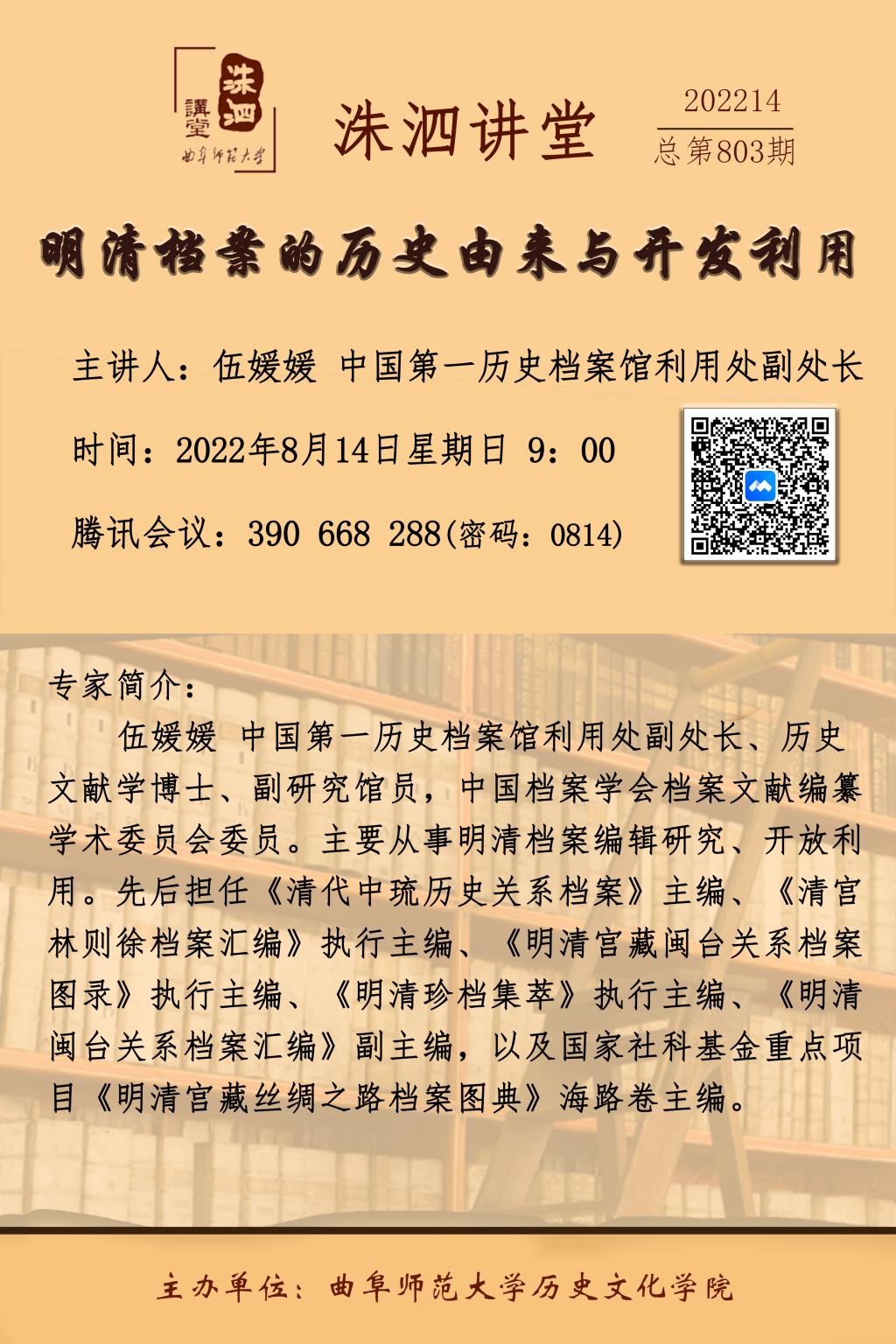 洙泗讲堂预告|伍媛媛:明清档案的历史由来与开发利用