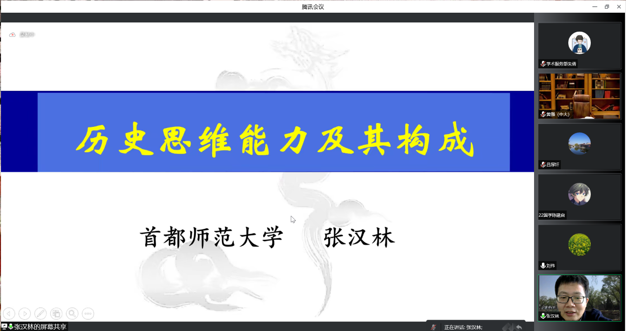 2022年11月10日上午10点,首都师范大学教师教育足球直播515 教授,博士生导师,北师大中国教育创新研究院历史学科首席专家张汉林作客“洙泗讲堂”,通过腾讯会议为我校师生作了题为《历史思维能力及其构成》的学术讲座。讲座由吕厚轩副教授担任主持人,刘伟教授担任与谈人,足球直播515 相关专业师生及线上来自全国各地的听众共300余人参加了此次活动。 讲座从历史思维与哲学思维、科学思维、艺术思维的横向对比中展开,张教授认为历史思维能力等于用历史思维解决问题的能力,他指出:历史学科能力即历史思维能力,关注和理解历史思维能力是学科历史和历史教学实践中不可忽视的重要问题。 张教授随即从三个维度做了阐释:其一,历史时序思维的培养 要求我们在时序中思考,需要根据当时历史环境思考,从当时人所处的历史情境,所欲解决的问题出发,进行同情的理解和跨世代的对话。同时历史思维的时间还指向未来,对过去的思考也是对未来筹划。 其二,历史思维具有批判性 历史研究建立在史料的基础上,但不能轻信史料,而是需要抱着谨慎的态度仔细地考证,在众多的史料中去伪存真,去粗求精。张教授引用《商君书》中商鞅变法的例子说明了理解材料要返回原文,结合材料的上下文,才能把握事件发展的来龙去脉,形成更深刻的理解。 其三,历史思维能力的教育底蕴 张教授以从不同角度观察半杯水为例子,指出历史思维不同于科学思维,艺术思维,和哲学思维,是历史学科独有的思维方式,是对世界的经验的理解。而历史思维能力则更具体,是思维主体在思维活动中的实际表现。张教授结合学科历史和历史教学的实际情况,认为培养学生的历史思维能力要求不必过高,而应以“应知必会”为标准,让学生体验历史知识是如何生产出来的,要淬炼学生思维的明晰性和批判性。 刘伟教授在总结时,高度评价了张教授所做的报告,认为精彩、全面、权威,其本人也收获颇丰。对教学实践和教学研究都十分有价值。在互动环节,张教授针对听众提出的“历史不能假设角度下如何体现批判性思维”问题进行解答,同学们受益匪浅。至此,本次讲座圆满结束。