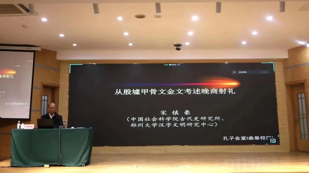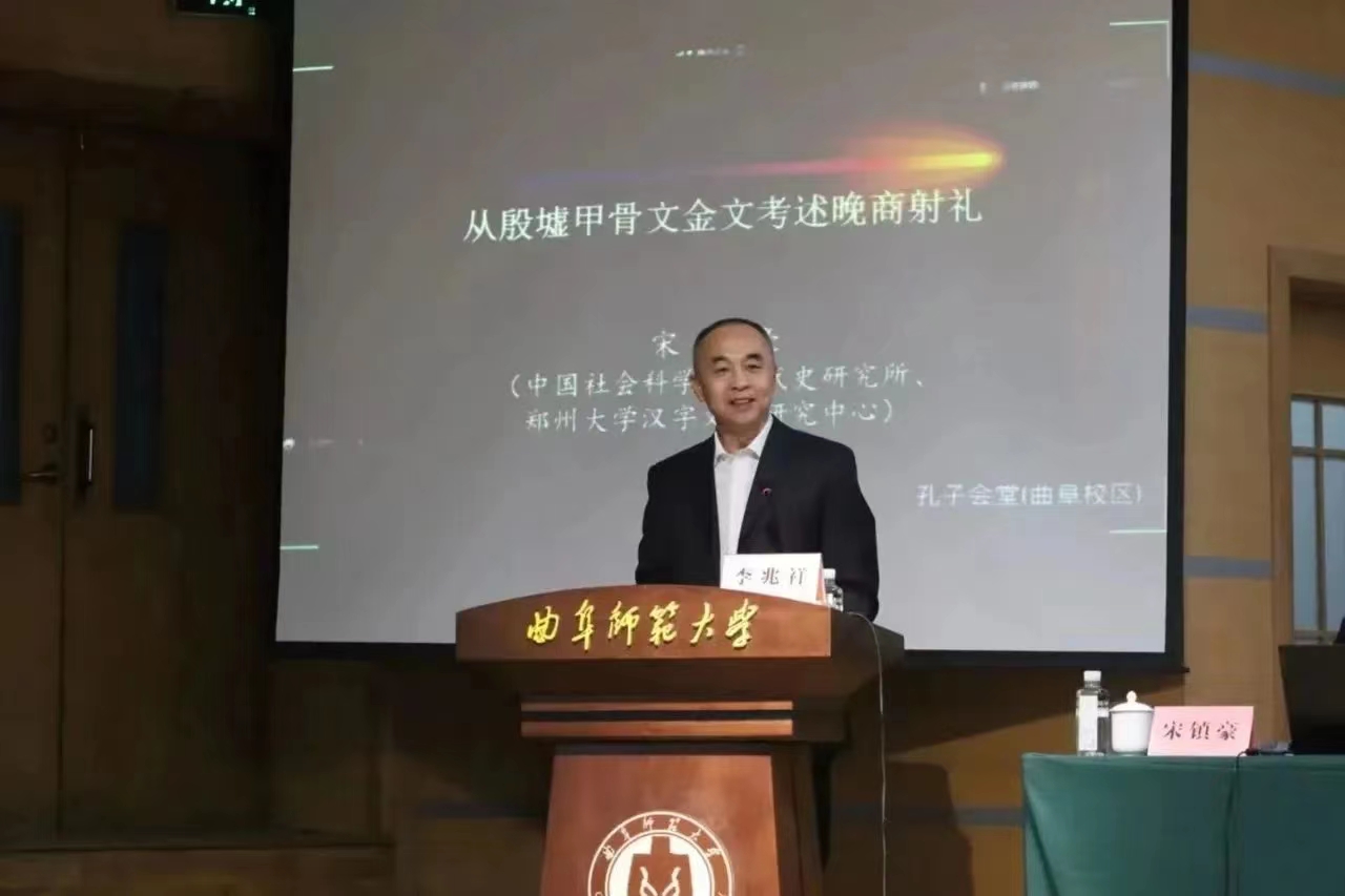 3月15日下午,郑州大学甲骨学科首席教授、博士生导师宋镇豪教授做客“洙泗讲堂”,为全校师生作了题为《从殷墟甲骨文金文考述晚商射礼》的学术讲座。讲座由曲阜师范大学副校长李兆祥教授主持,刘伟教授、张俊成副教授担任与谈人,300余名师生齐聚孔子会堂参加了此次活动。