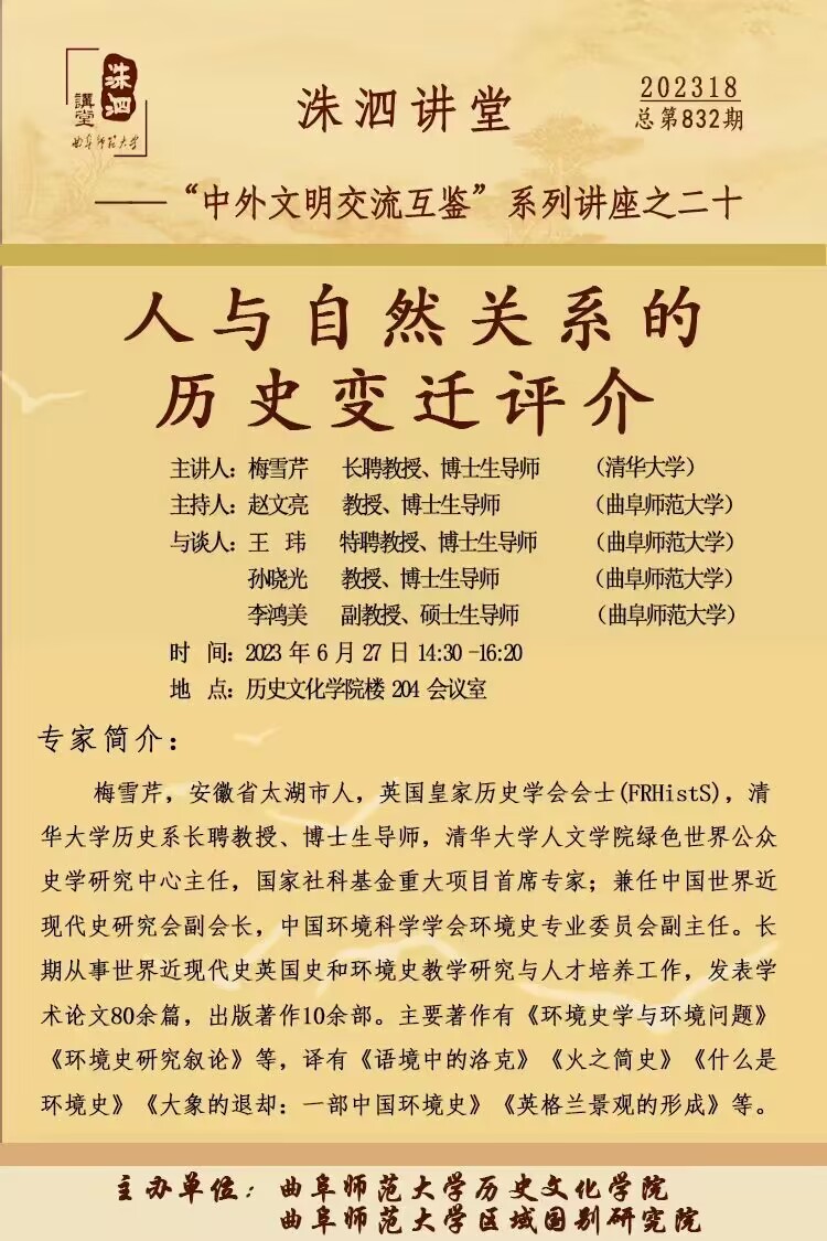 洙泗讲堂预告|梅雪芹:人与自然关系的历史变迁评介