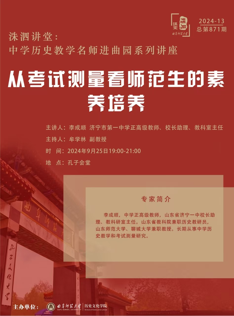洙泗讲堂预告|李成顺:从考试测量看师范生的素养培养