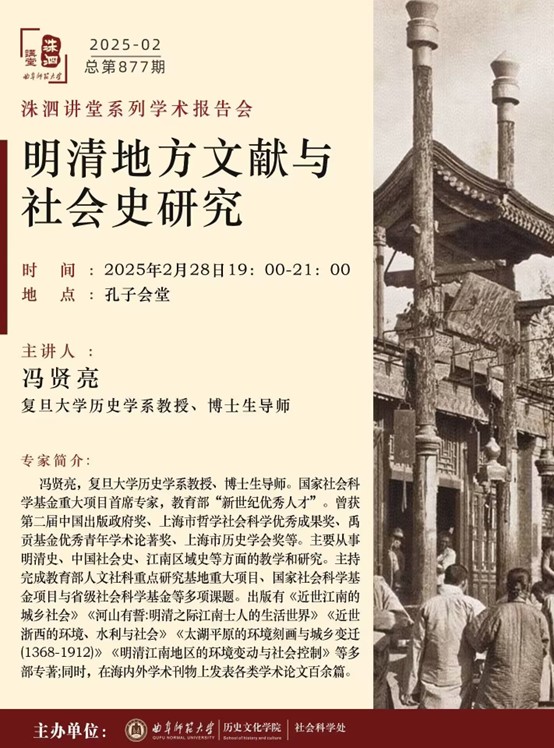 洙泗讲堂预告|冯贤亮:明清地方文献与社会史研究