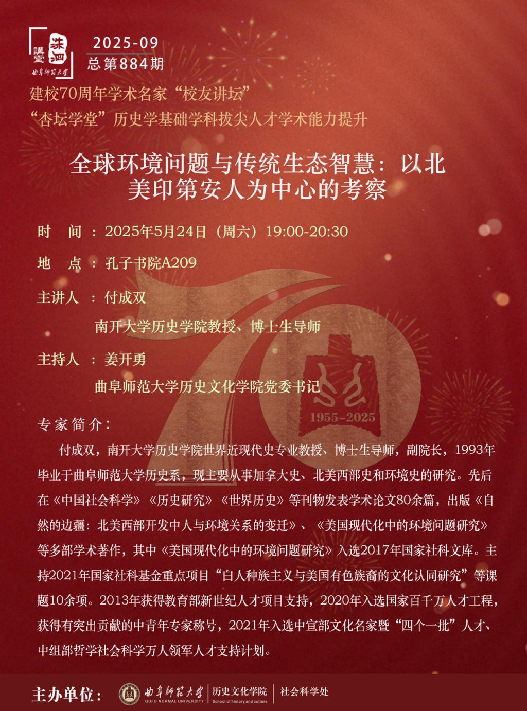 洙泗讲堂预告|付成双:全球环境问题与传统生态智慧:以北美印第安人为中心的考察