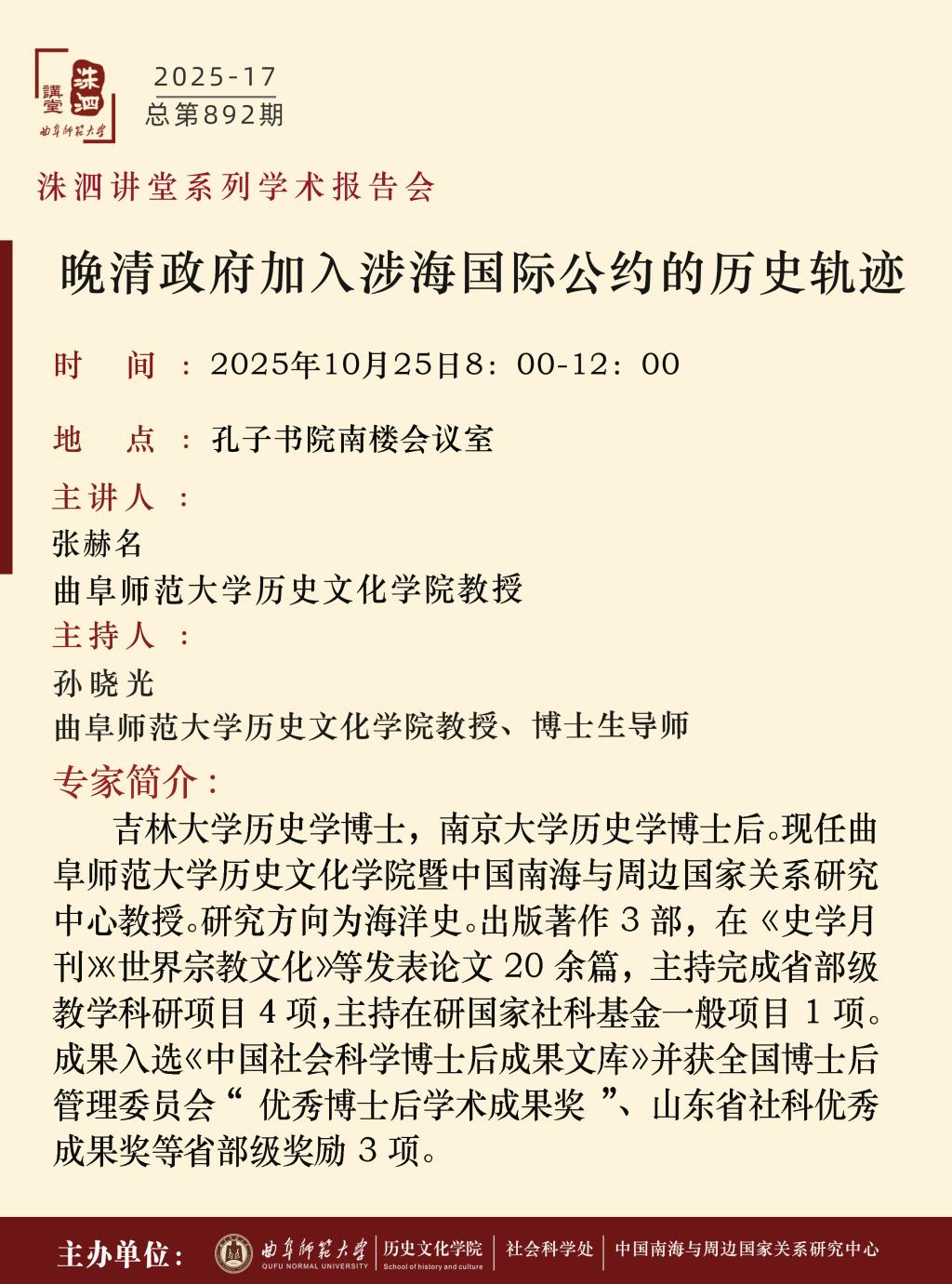 洙泗讲堂预告 | 张赫名:晚清政府加入涉海国际公约的历史轨迹