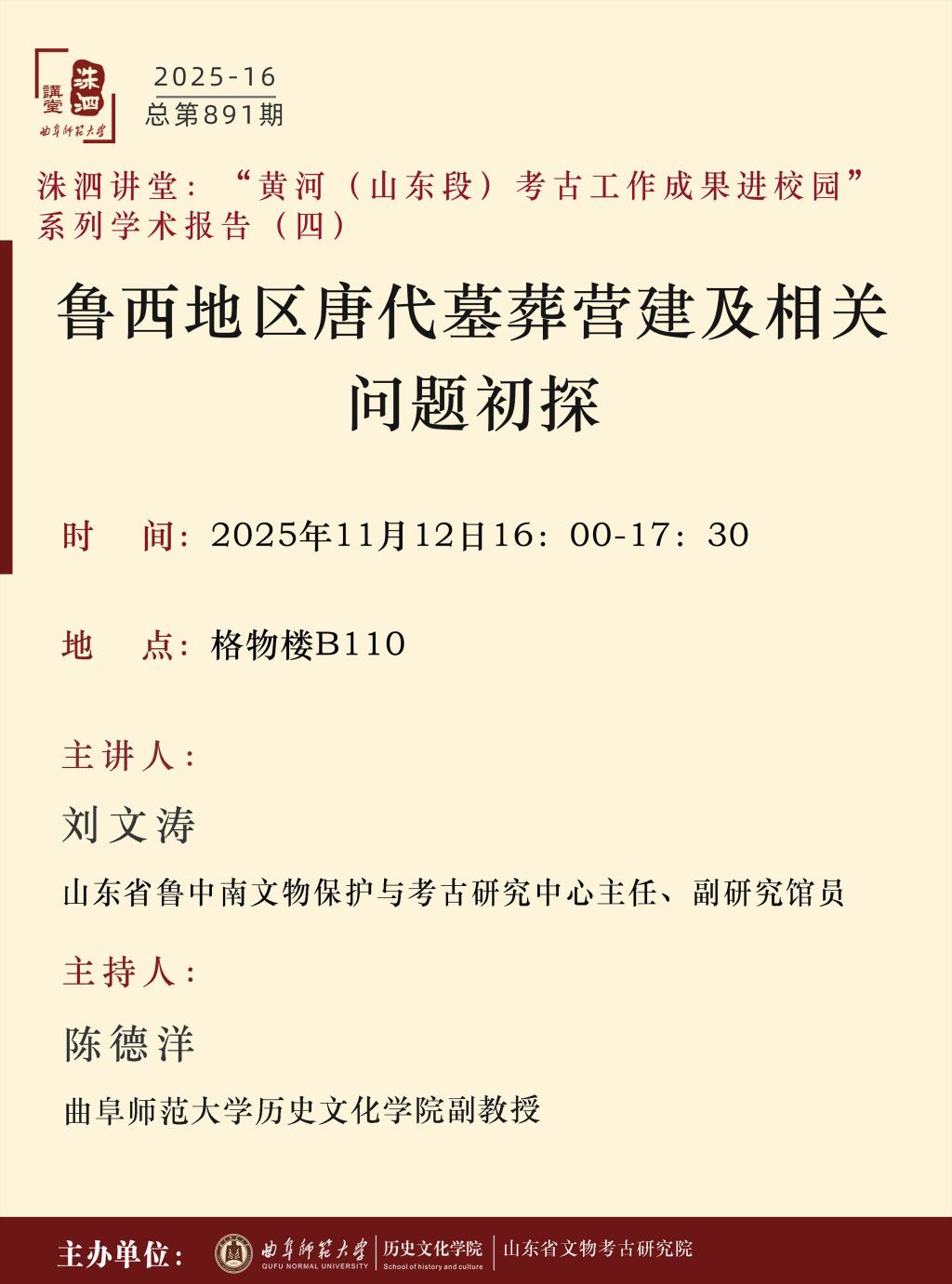 洙泗讲堂预告|刘文涛:鲁西地区唐代墓葬营建及相关问题初讨论