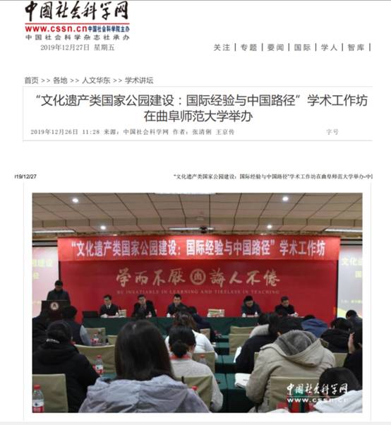 “中国社会科学网”于2019年12月26日以《“文化遗产类国家公园建设:国际经验与中国路径”学术工作坊在曲阜师范大学举办》为题发布了本次工作坊的相关情况,《中国社会科学报》于2020年1月8日以《探索考古遗址公园建设的中国路径》为题报道了本次学术活动。
