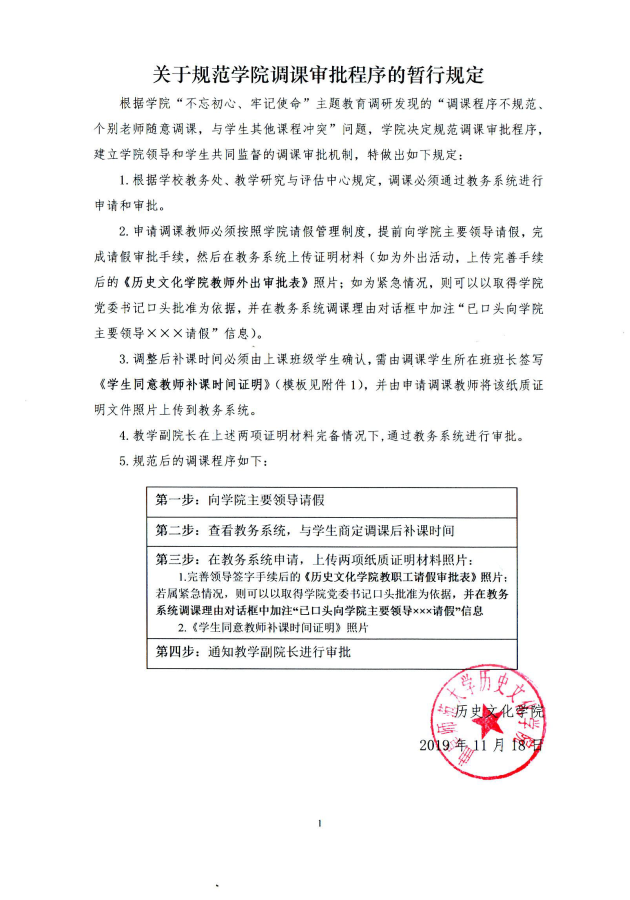足球直播515官网 关于规范足球直播515 调课审批程序的暂行规定(2019.11.18党政联席会讨论通过)
