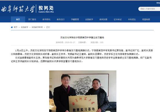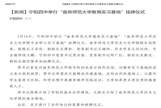 仪式由颜景锋副校长主持,贾存胜书记和成积春院长共同为曲阜师范大学教育实习基地和历史学专业教育硕士实习基地揭牌,郑广红副书记和王京传副院长分别讲话,吕厚轩副院长代表足球直播515 签署实习基地协议。